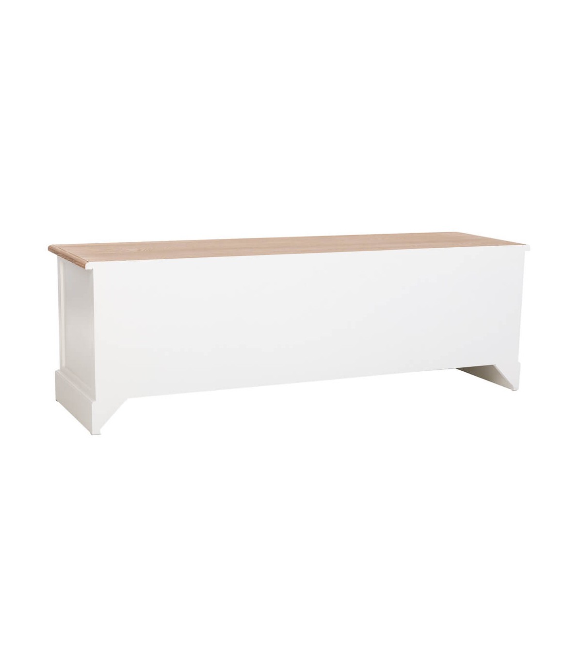 Este mueble de TV combina la calidez del abeto natural con la pureza del blanco lacado, creando un equilibrio perfecto entre tradición y frescura. Su tapa superior, ligeramente patinada, realza la veta de la madera y aporta textura visual al conjunto.