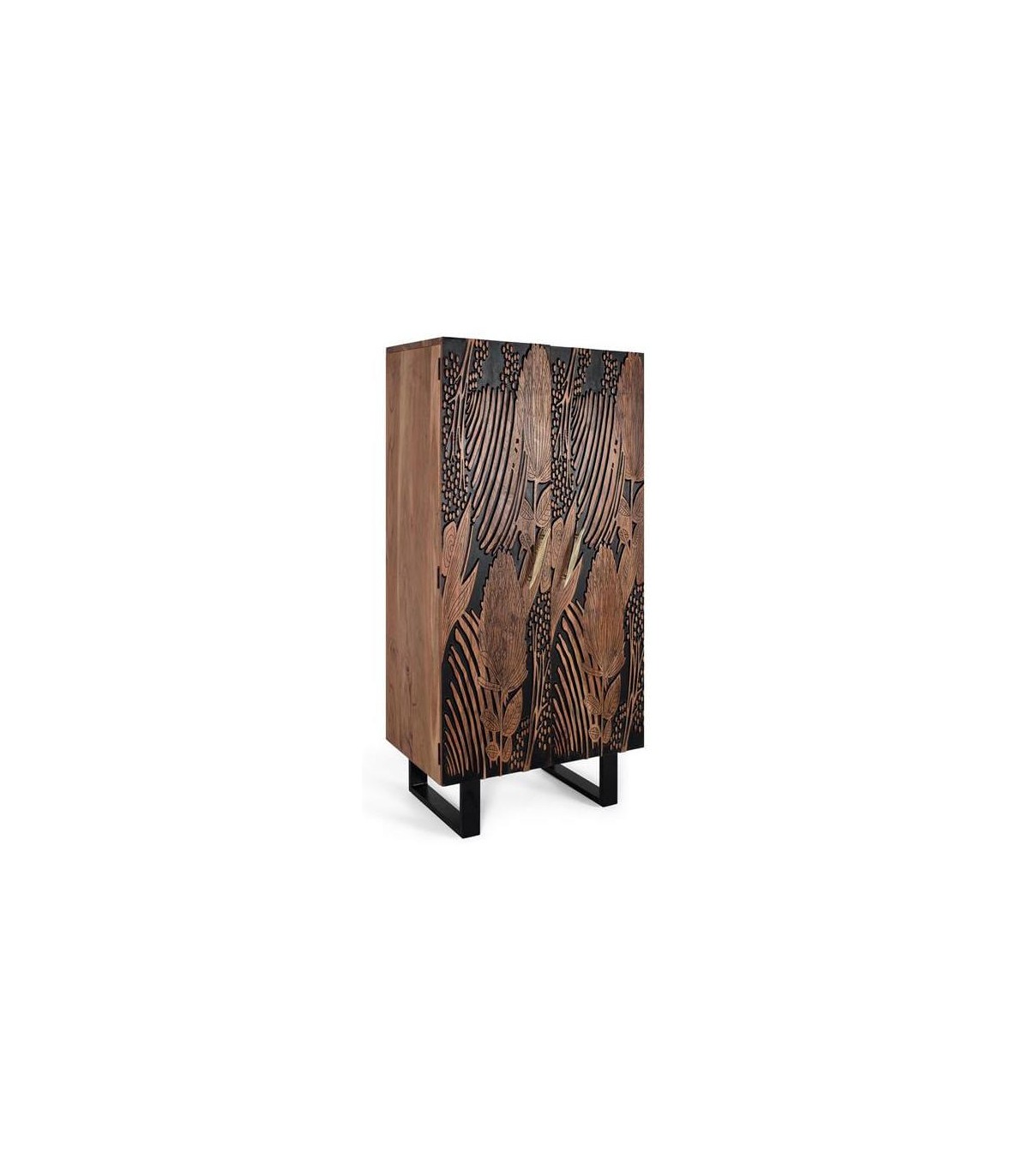 ARMARIO ROPERO 90 X 55 X 180 PROTOS MADERA ACACIA TALLADA NATURAL Y NEGRO