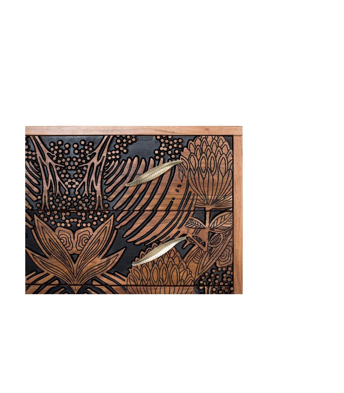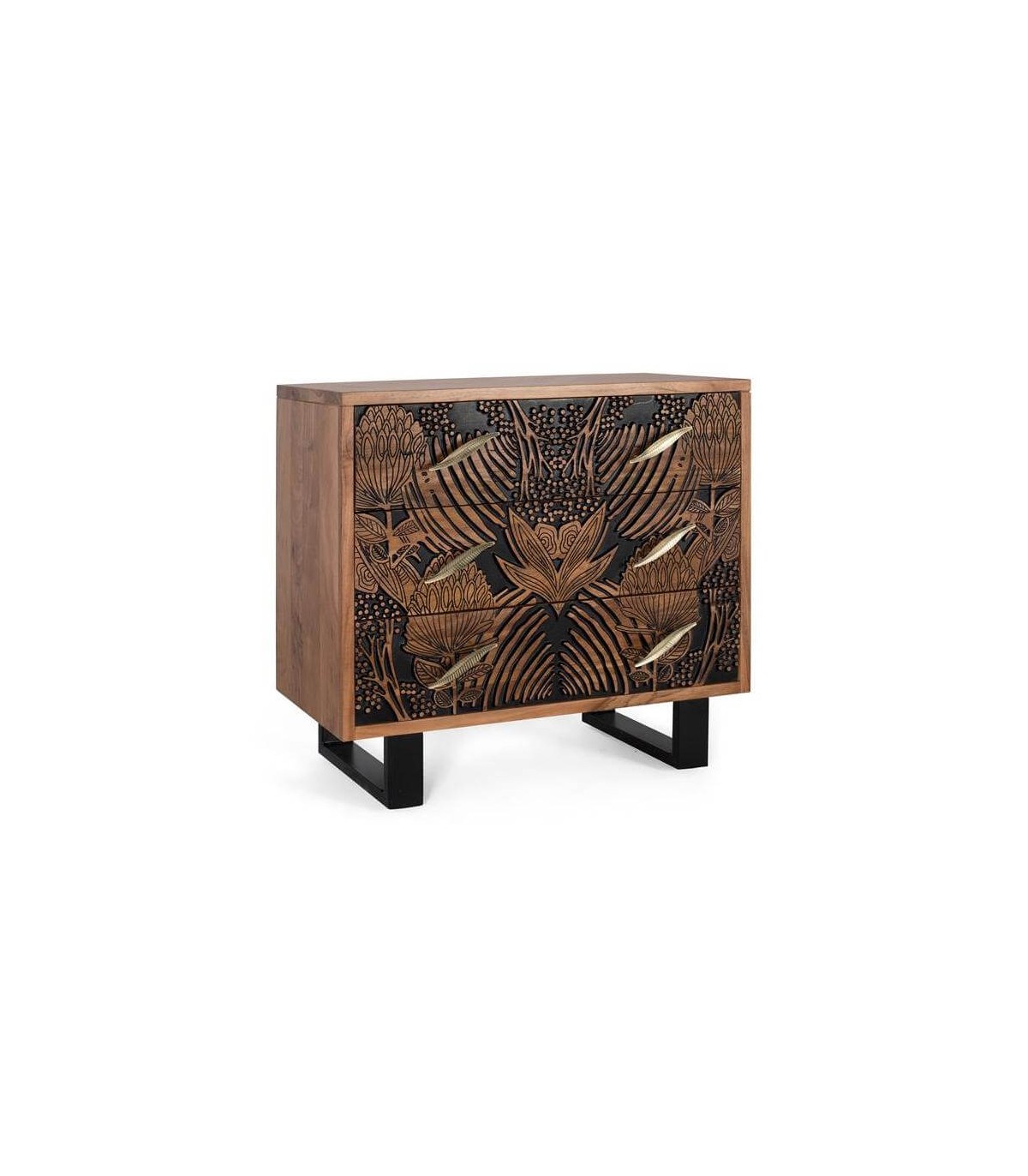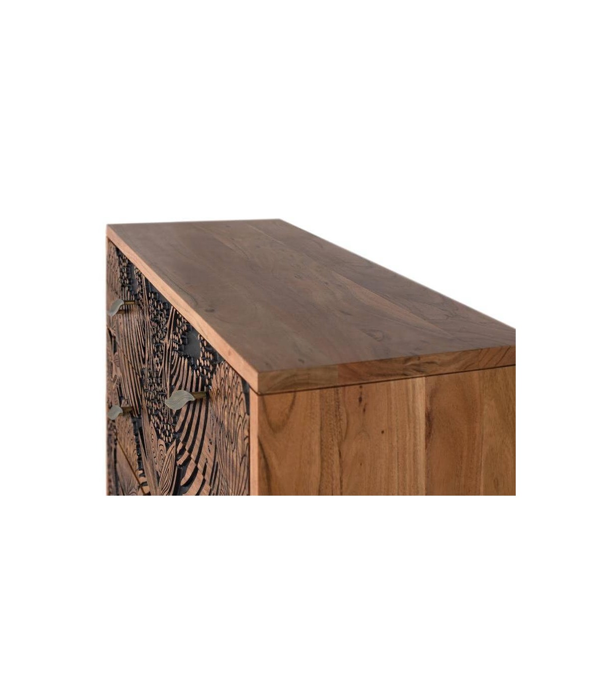 COMODA 93 X 40 X 83 PROTOS MADERA ACACIA TALLADA NATURAL Y NEGRO
