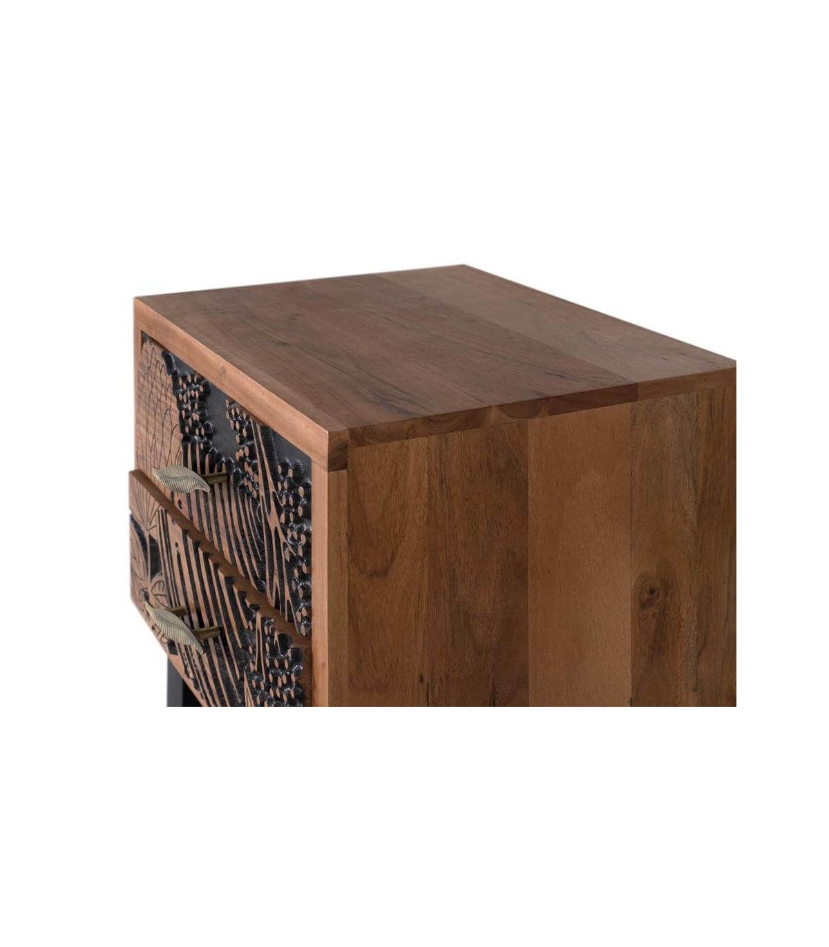 MESITA DE NOCHE 50 X 40 X 56 PROTOS MADERA ACACIA TALLADA NATURAL Y NEGRO