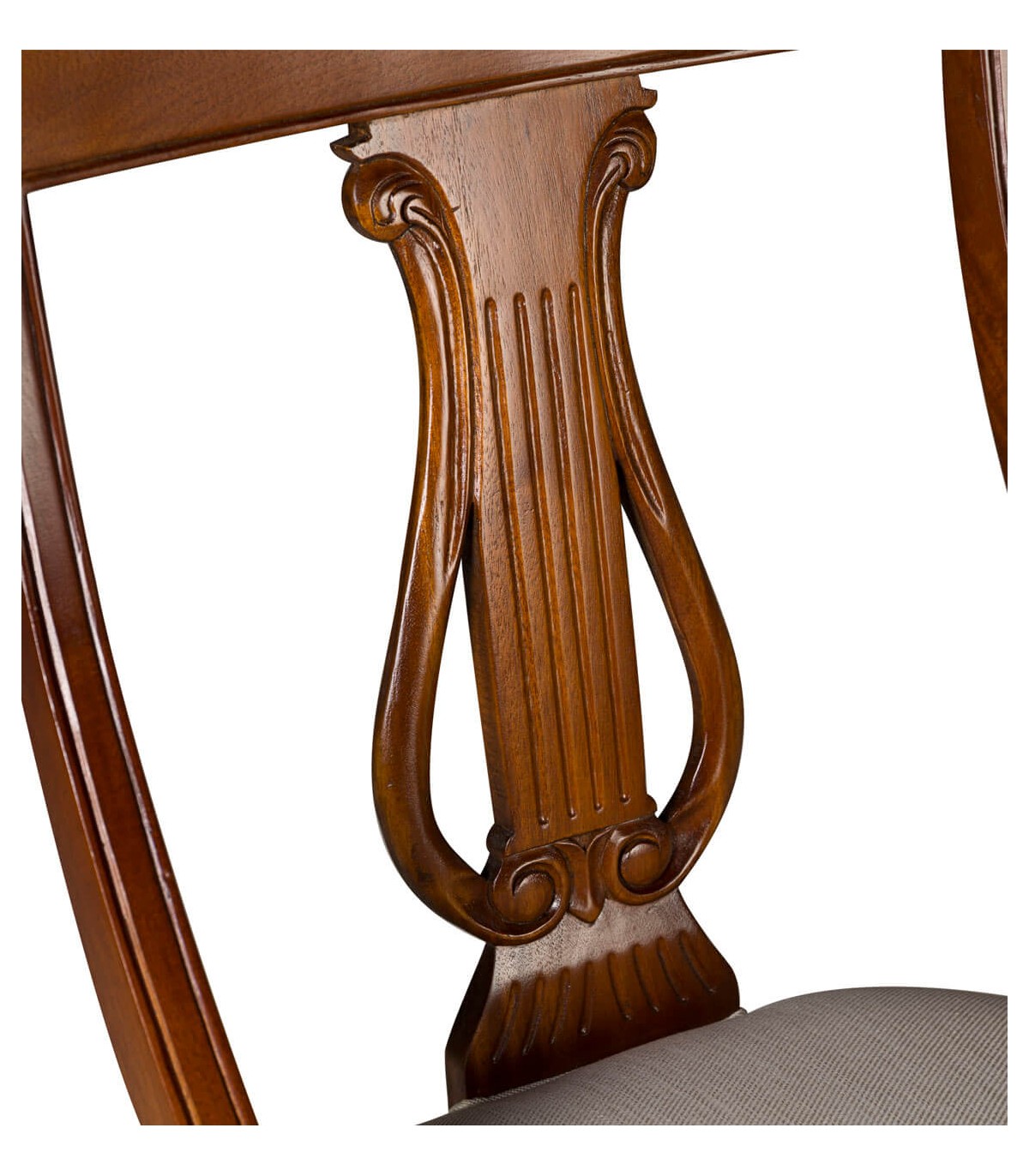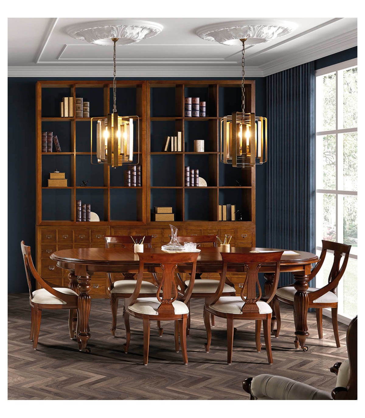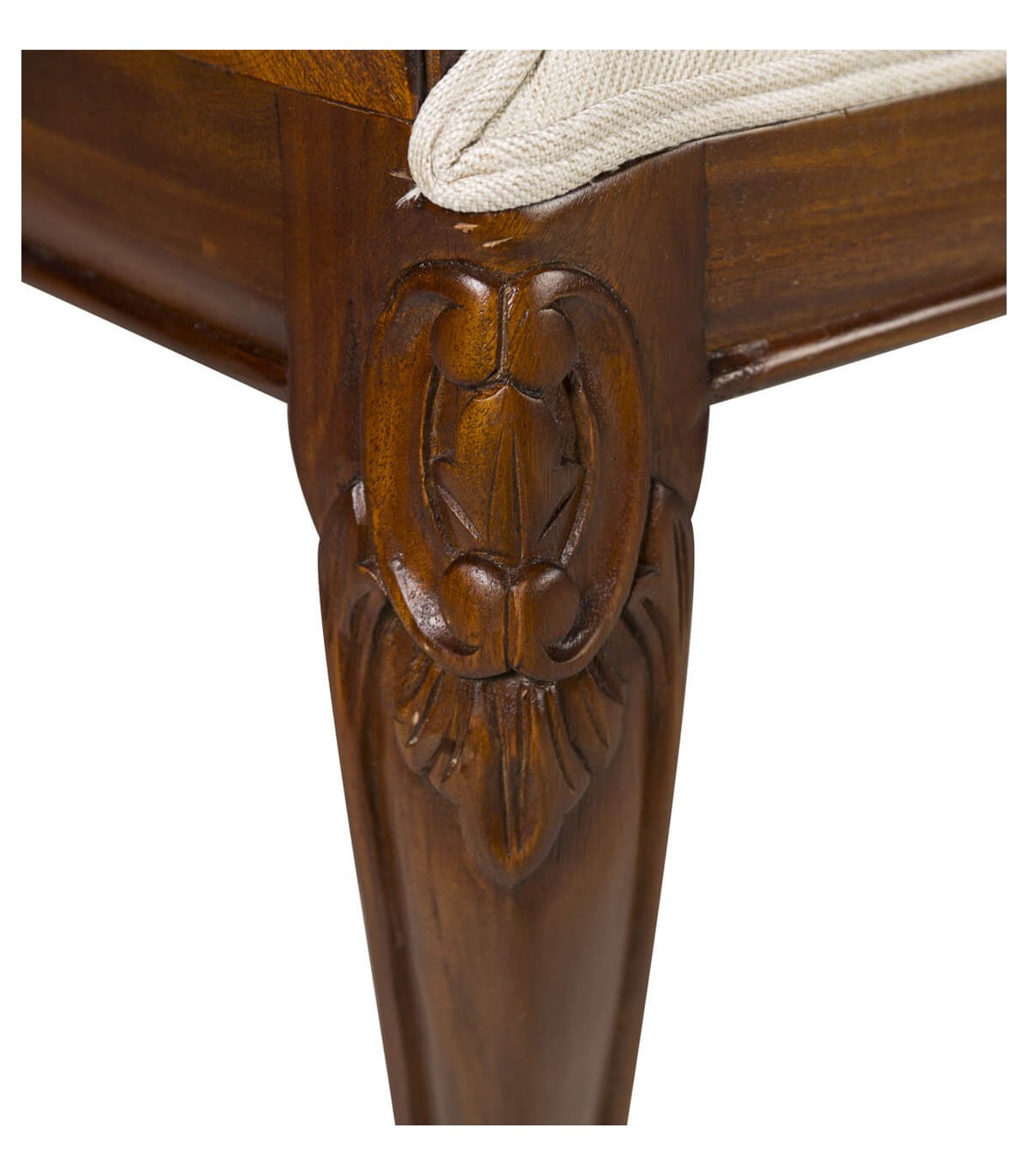 Acabado, caoba natural, polipiel verde ruleteada en oro.