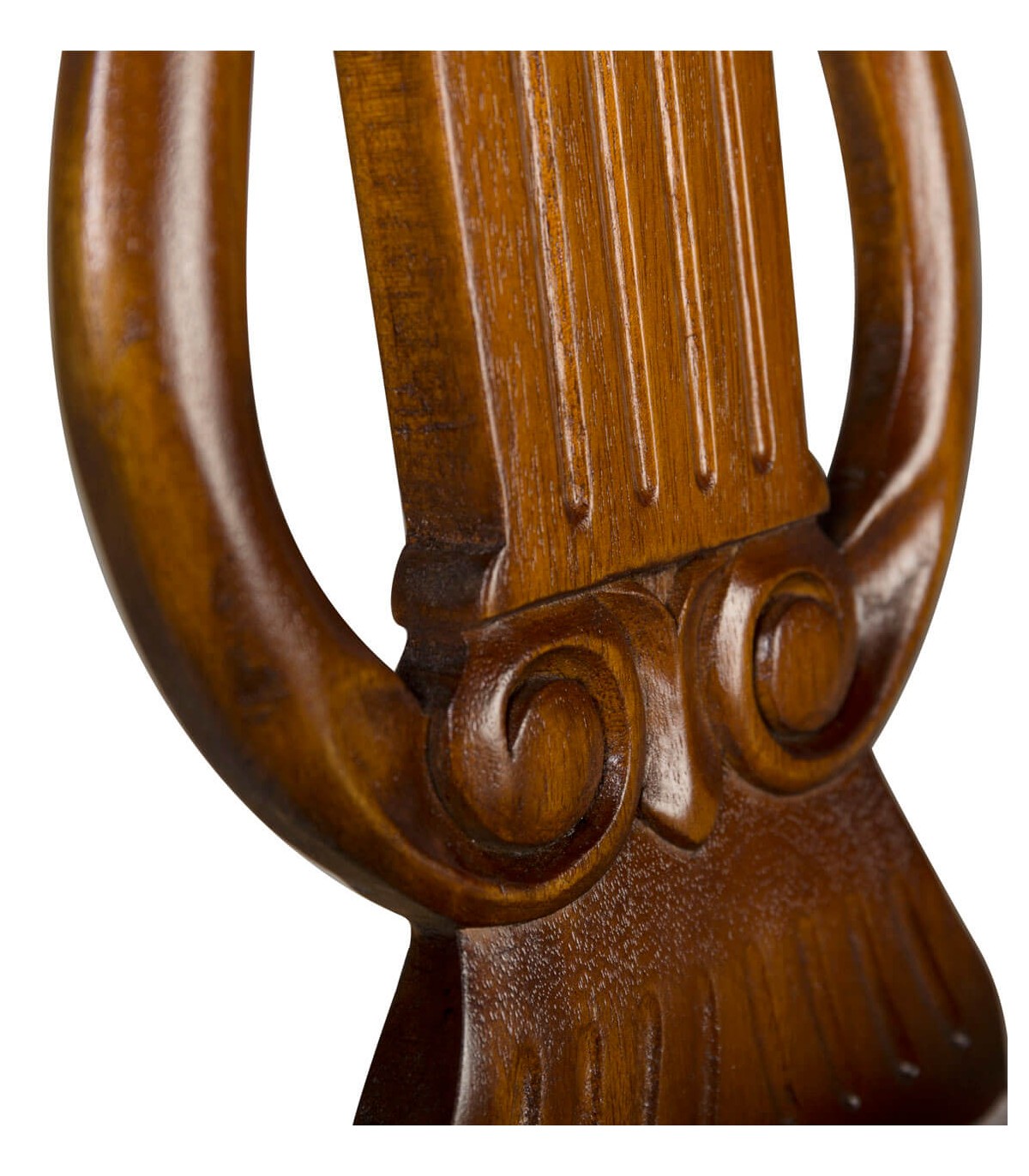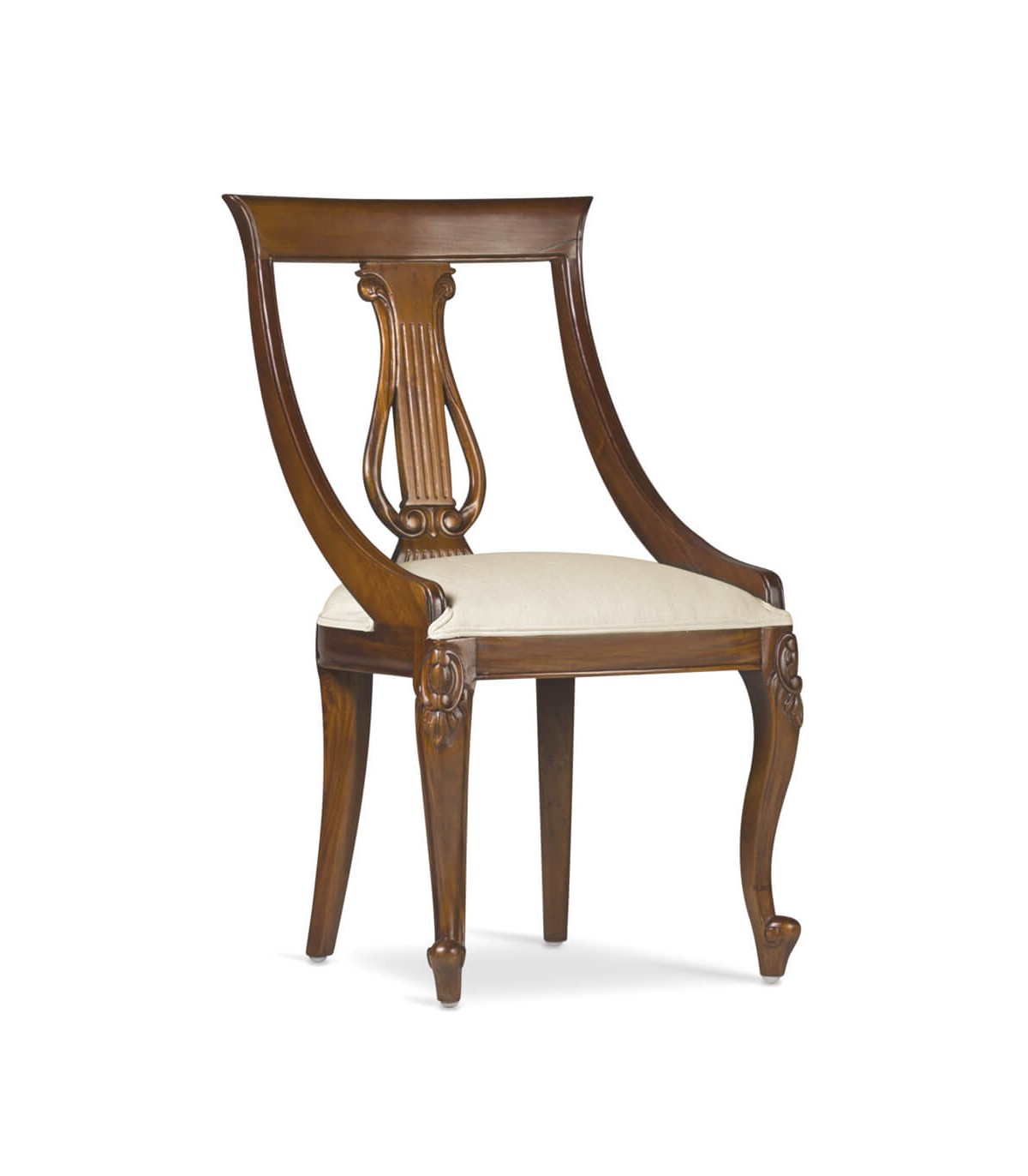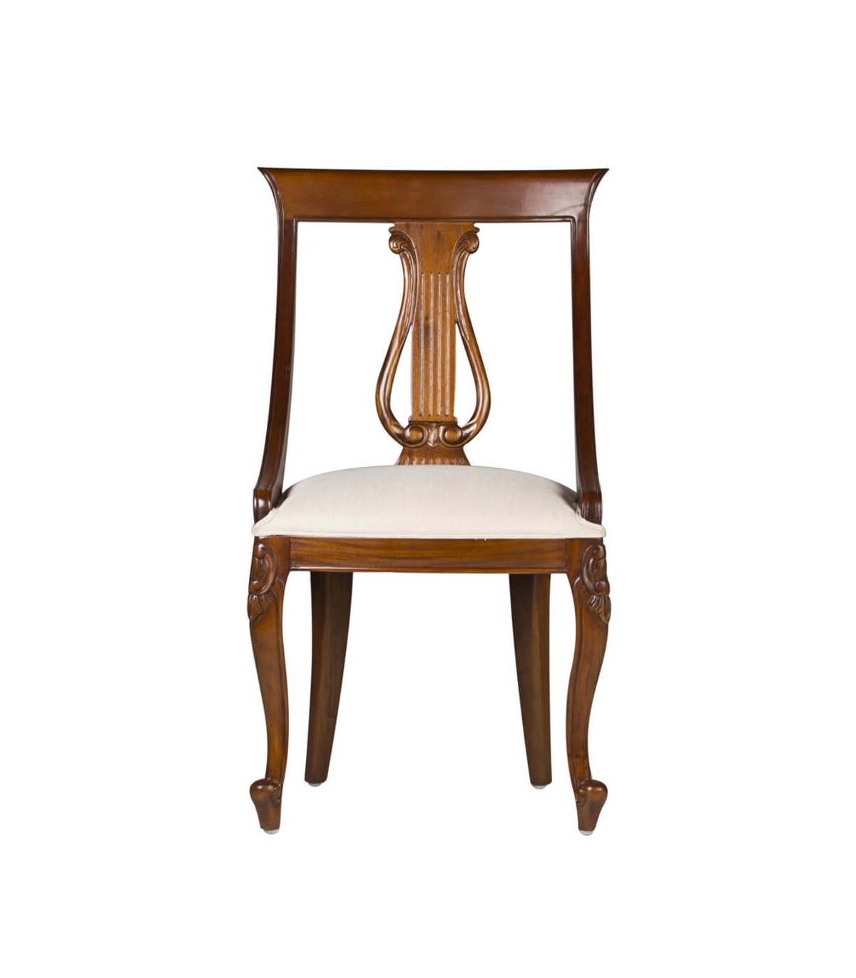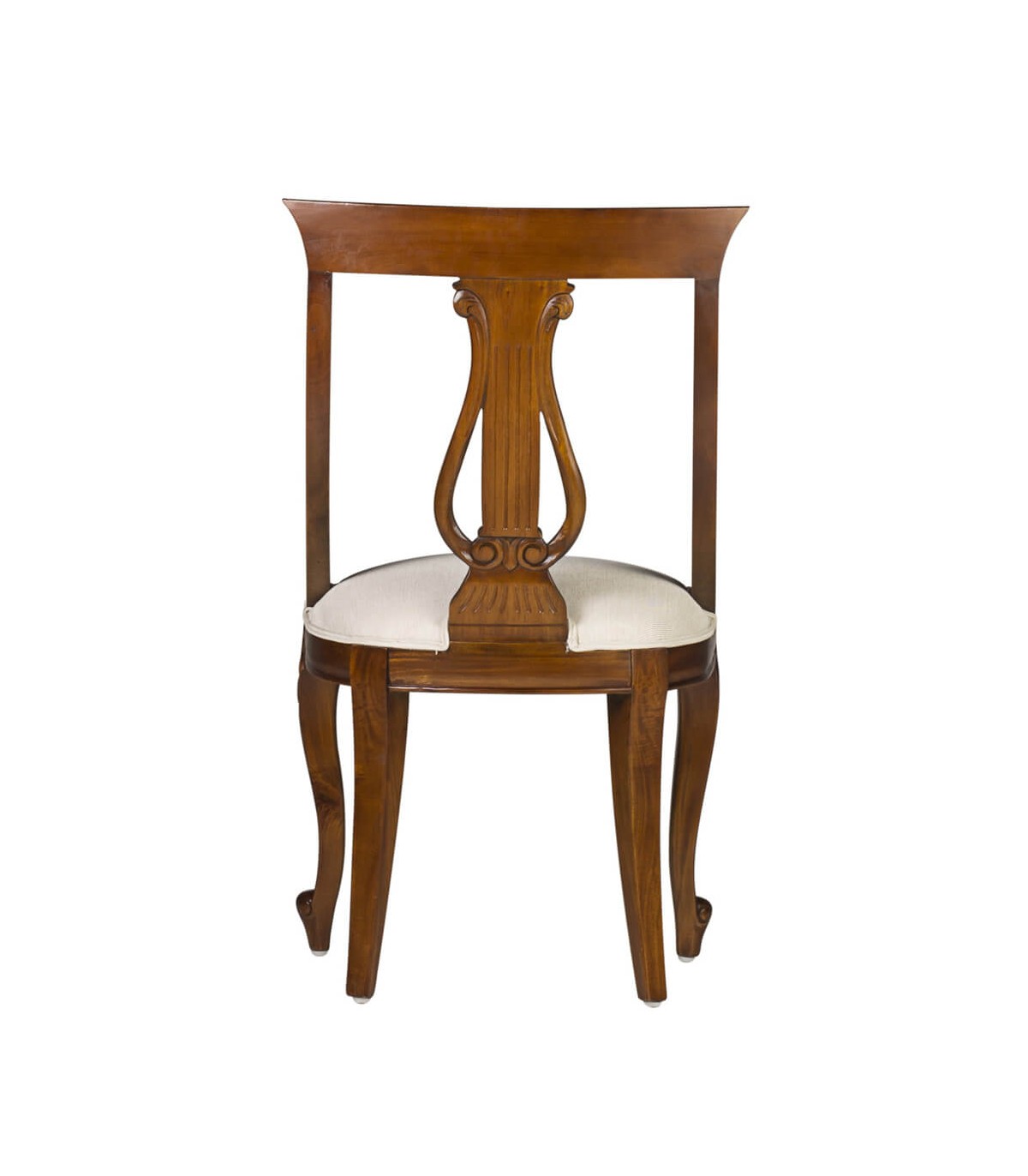 Acabado, caoba natural, polipiel verde ruleteada en oro.