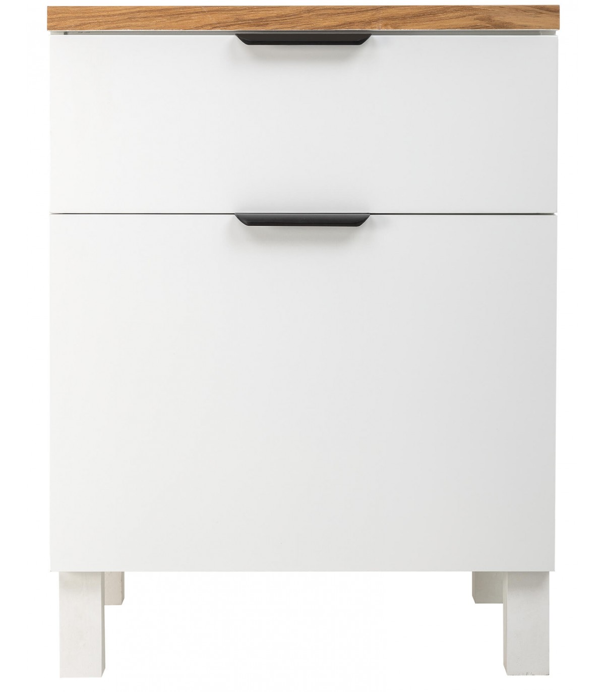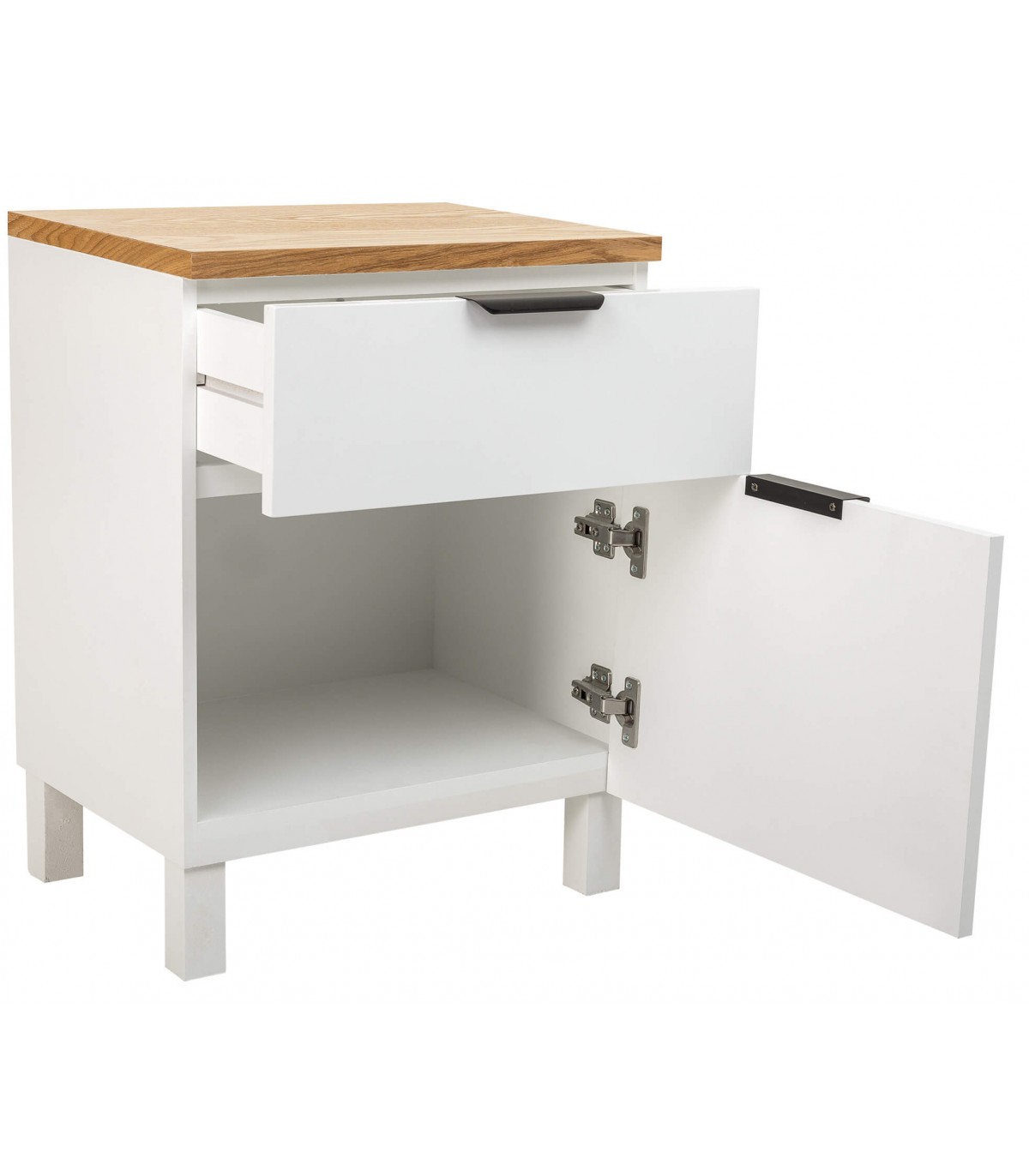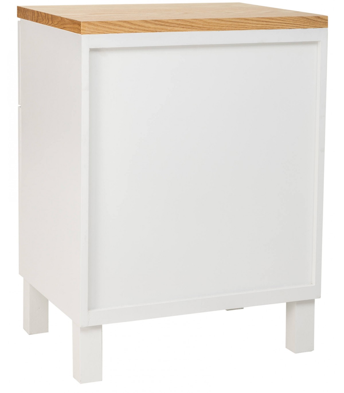 MESITA DE NOCHE 45 X 35 X 60 ARKEA MADERA NATURAL Y LACA BLANCA PUERTA