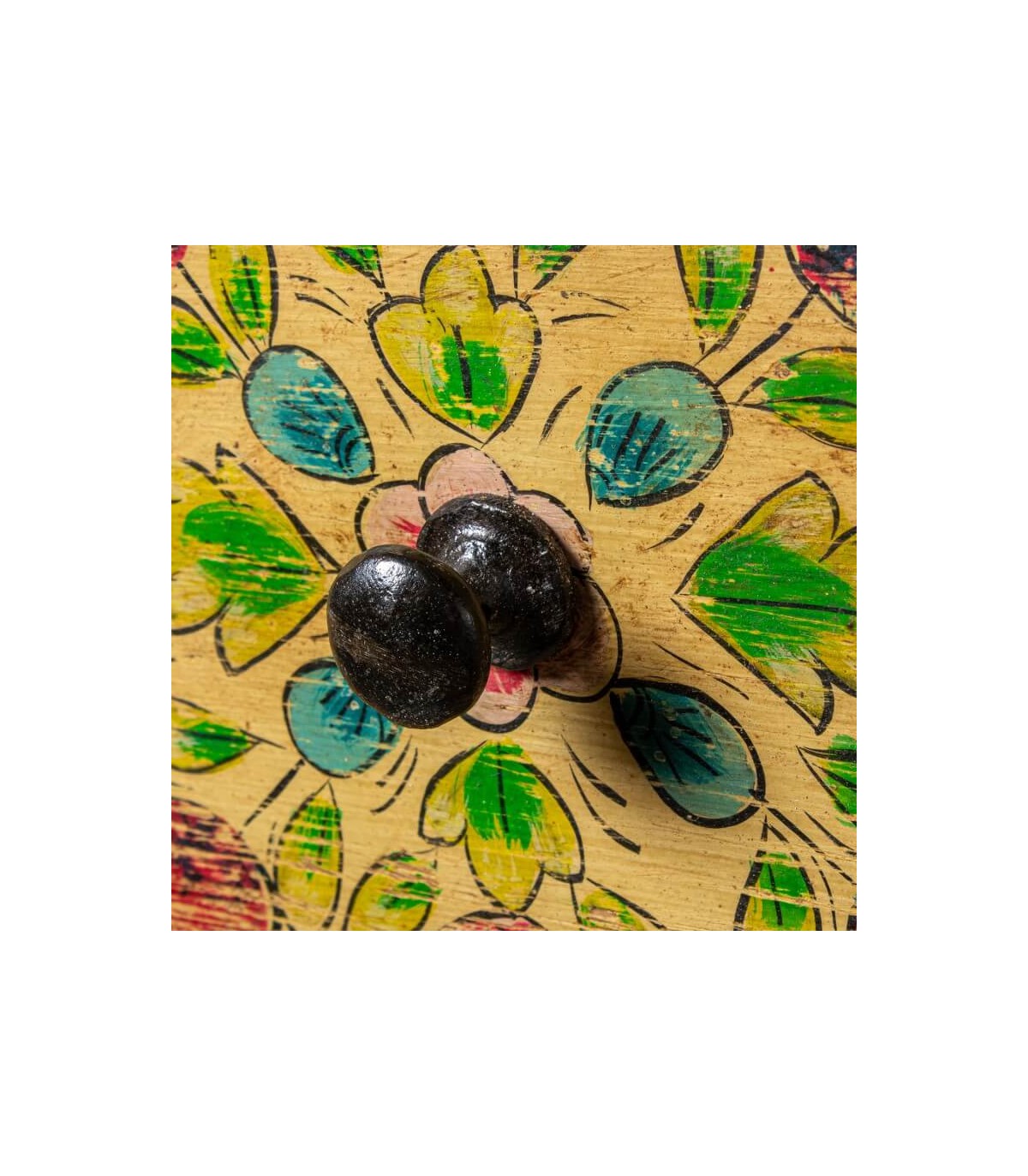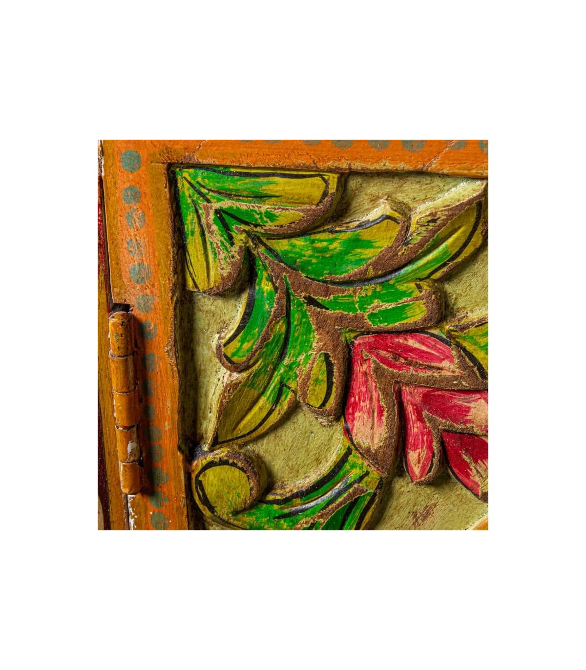 • Acabado, madera tallada y decorada a mano combinada con ratán y el interior decapado en blanco. Fabricación artesanal. entendemos las variaciones de tonalidad, tamaño y forma o ciertas imperfecciones (grietas, nudos, marcas) como un valor añadido que la convierten en pieza única.