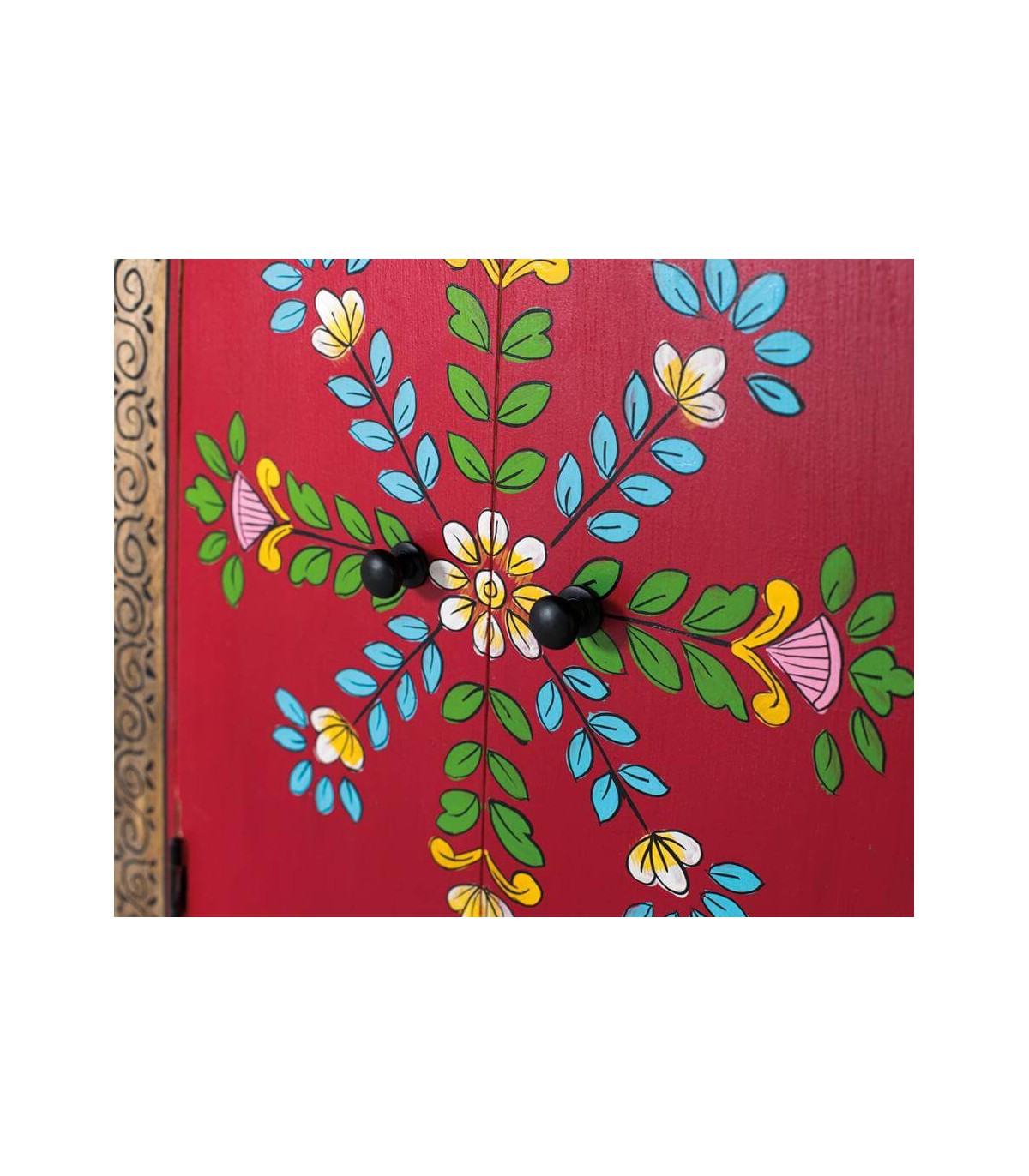 ARMARIO PEQUEÑO 50 X 35 X 92 ARAPEA MADERA ROJO DECORADA A MANO
