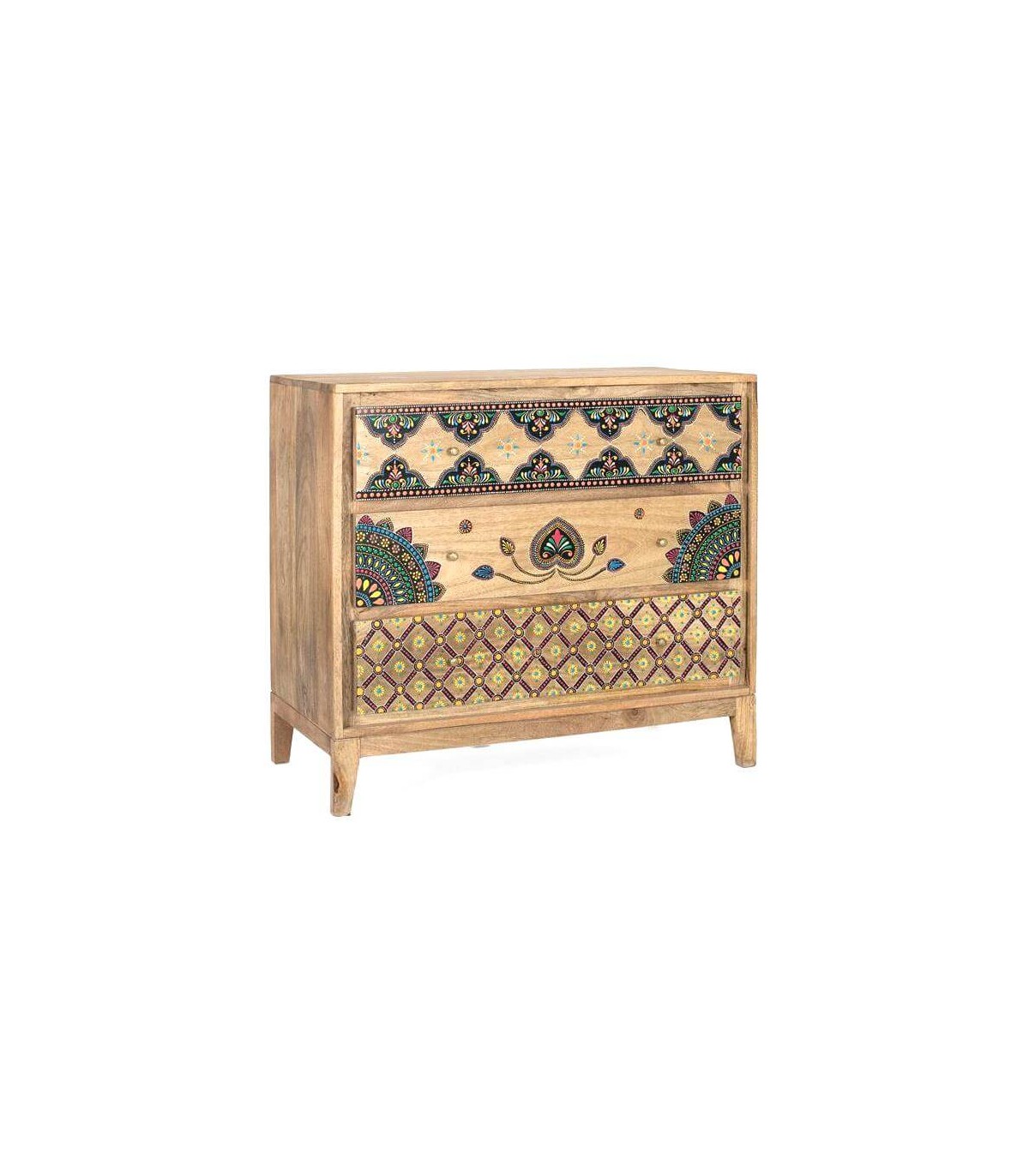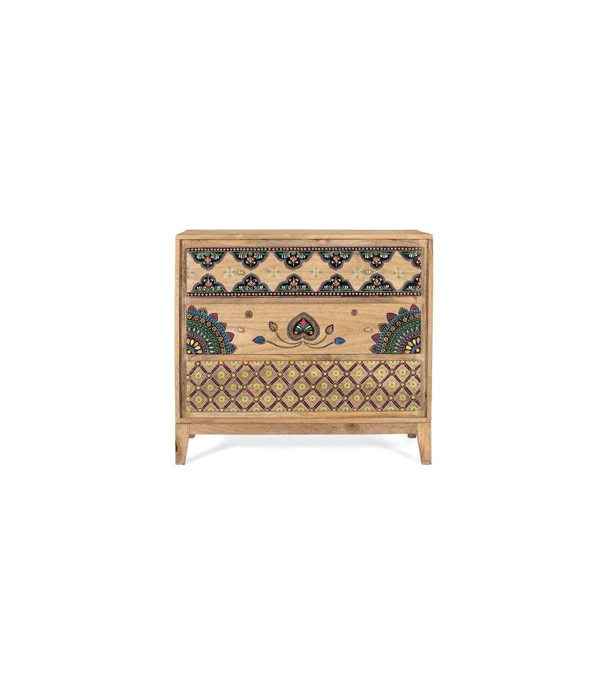 COMODA 91 X 40 X 82 ARAPEA MADERA DE MANGO ARTESANAL DECORADA A MANO