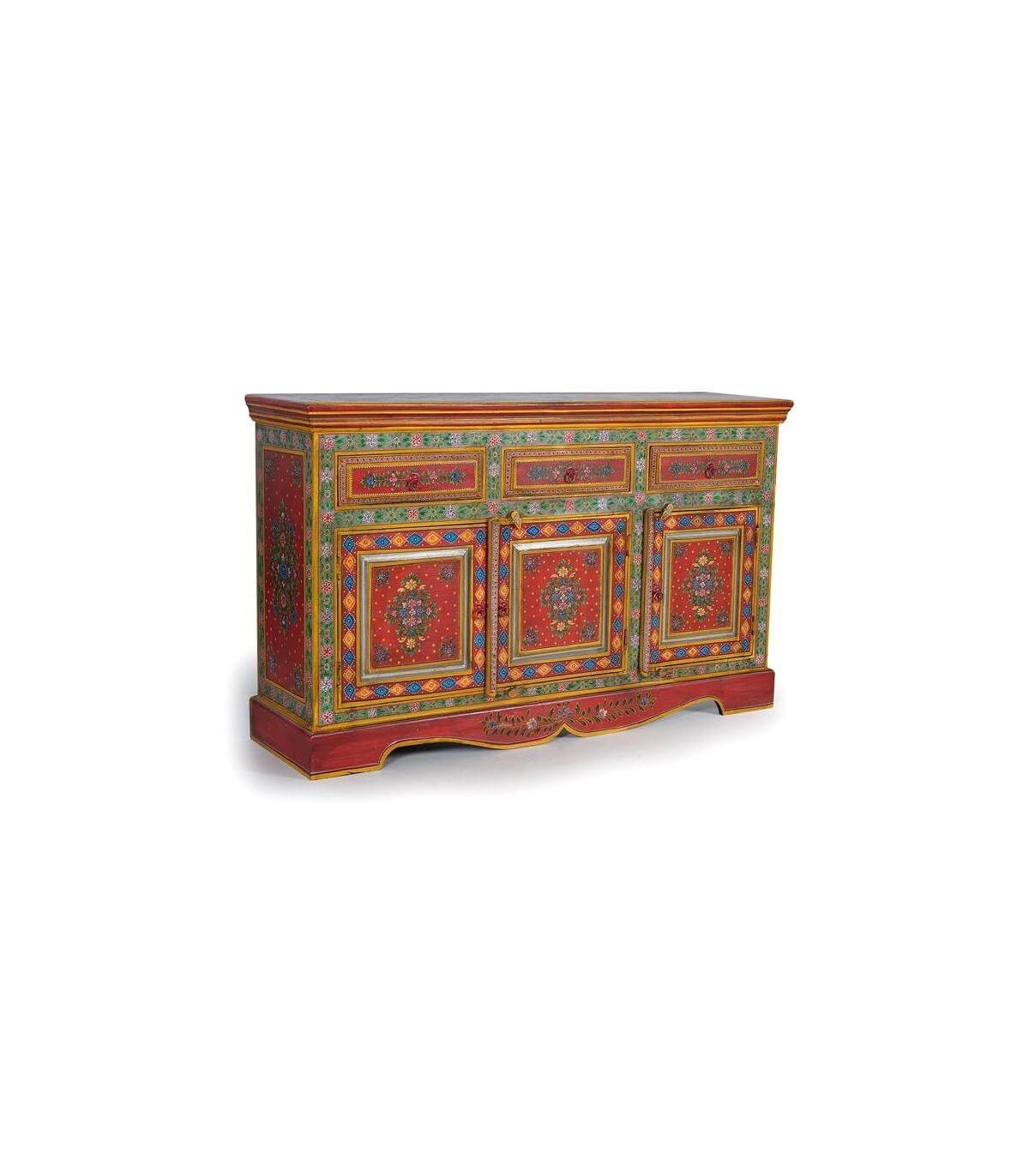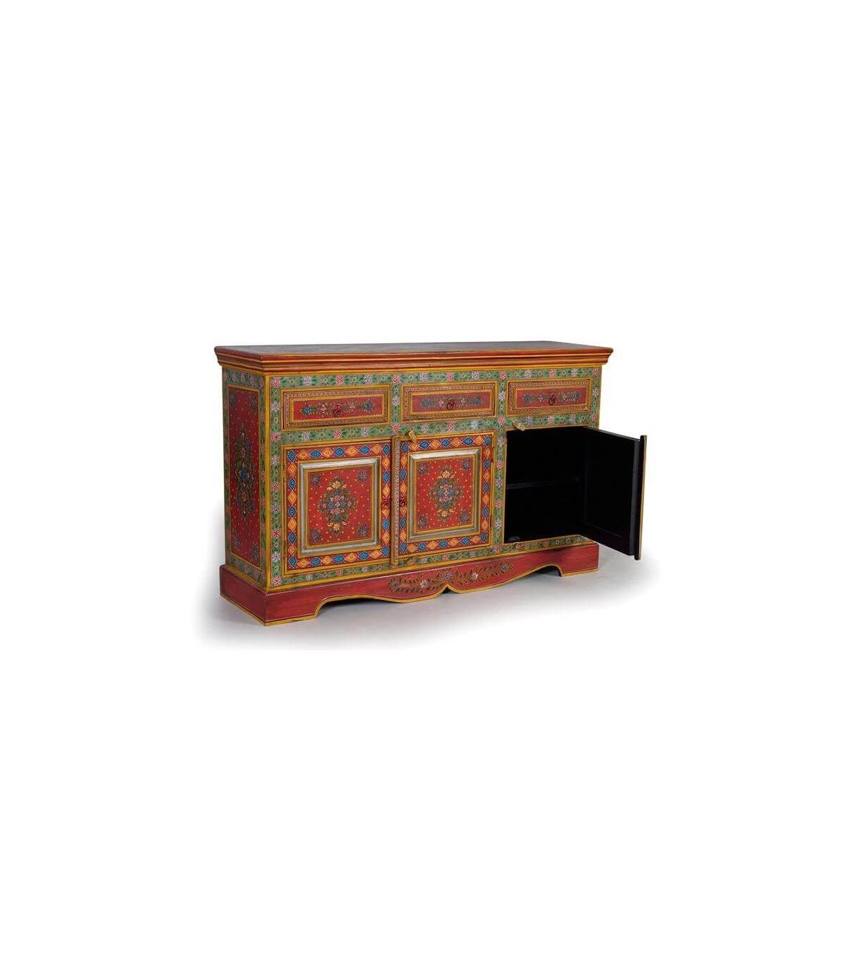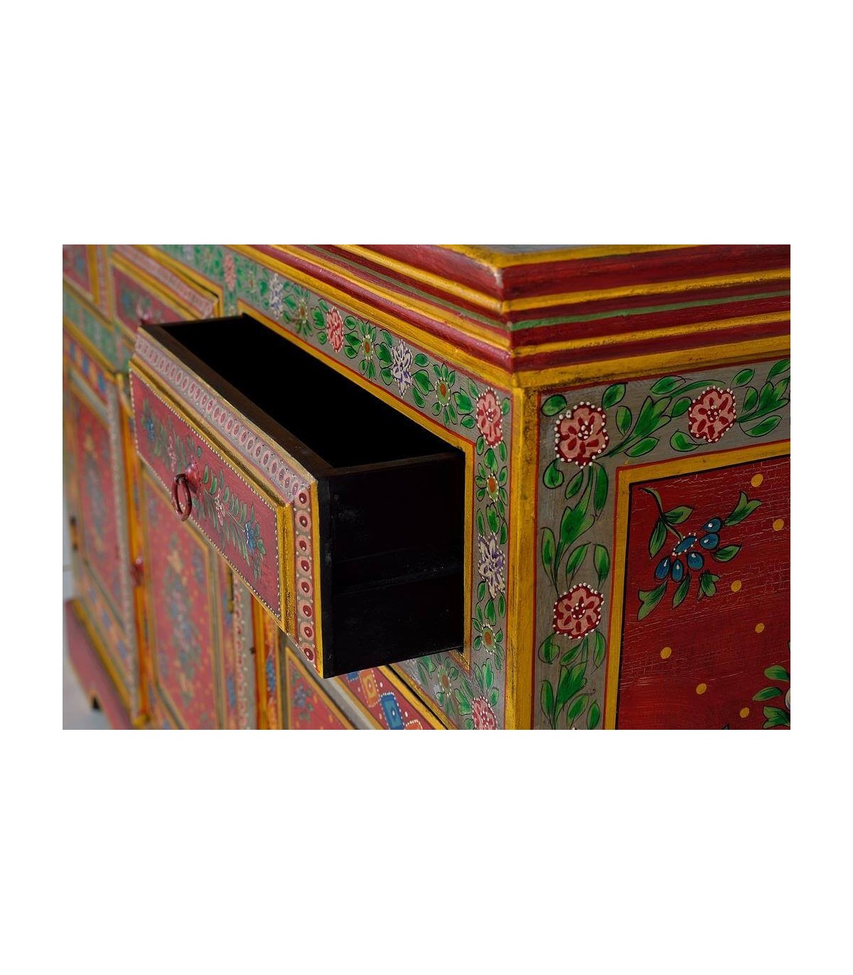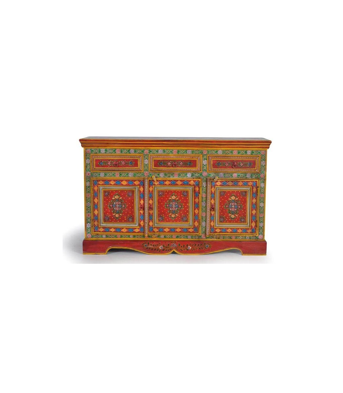 Aparador de nuestra colección de muebles Arapea, una colección de importación realizada en la india, un mueble de buena calidad trabajado en madera maciza y con todos los detalles pintados a mano, una colección perfecta para quien quiere darle un toque étnico a su decoración.