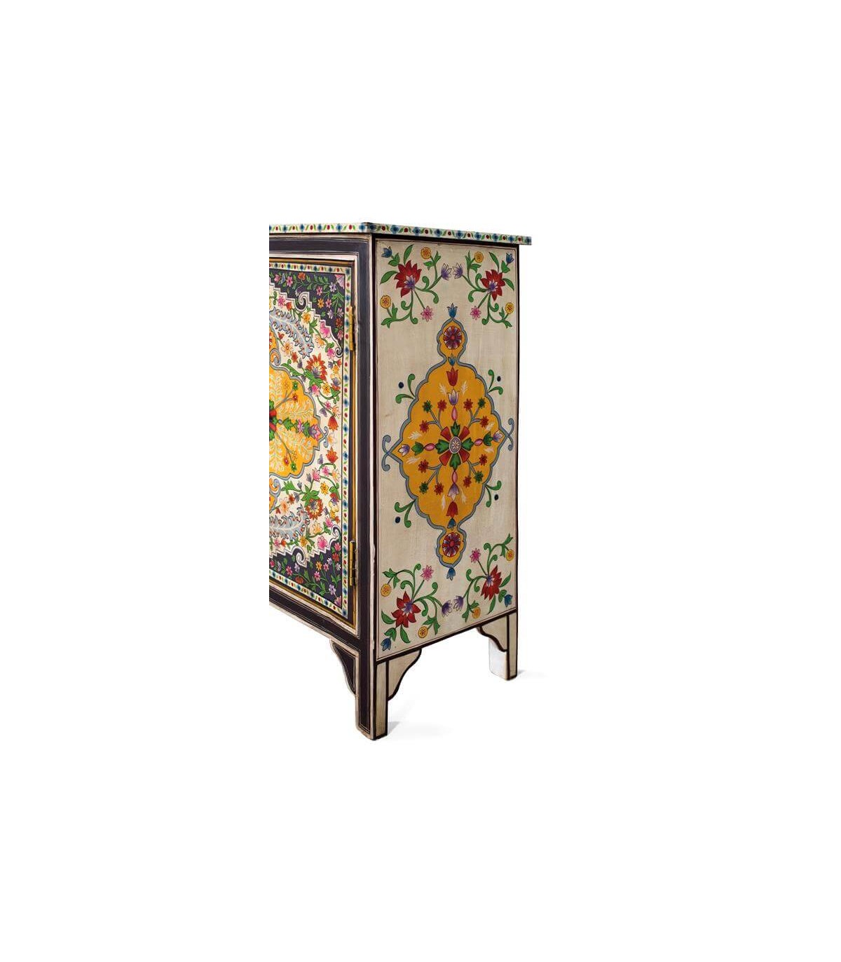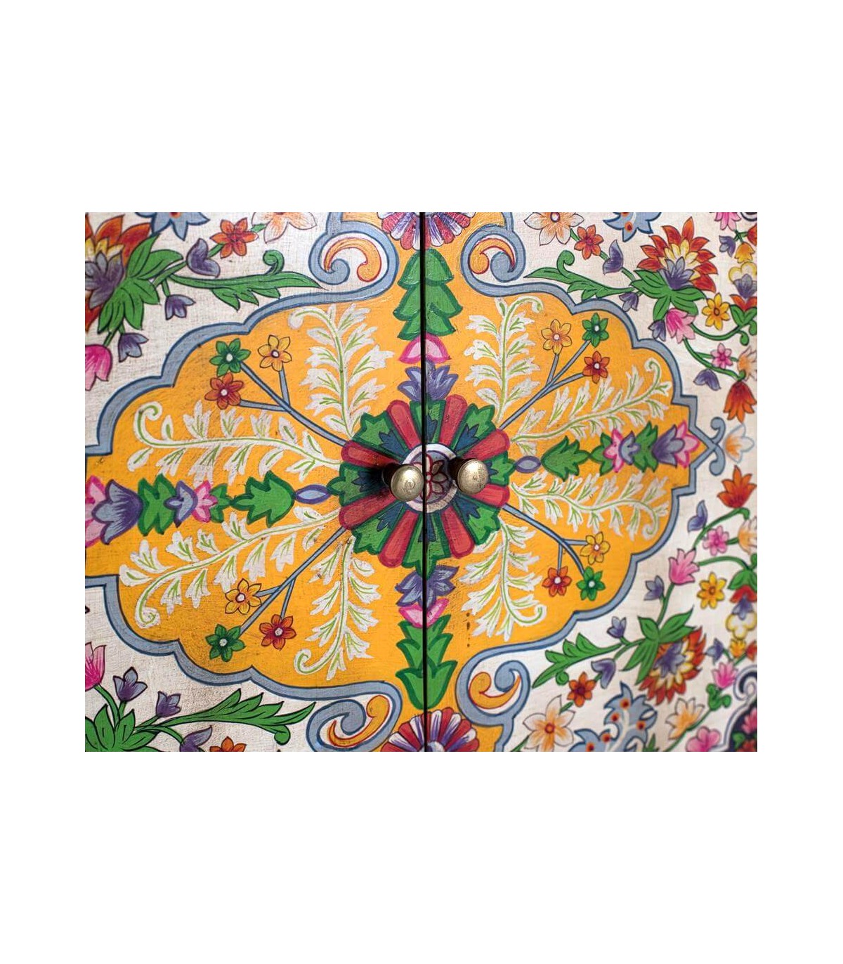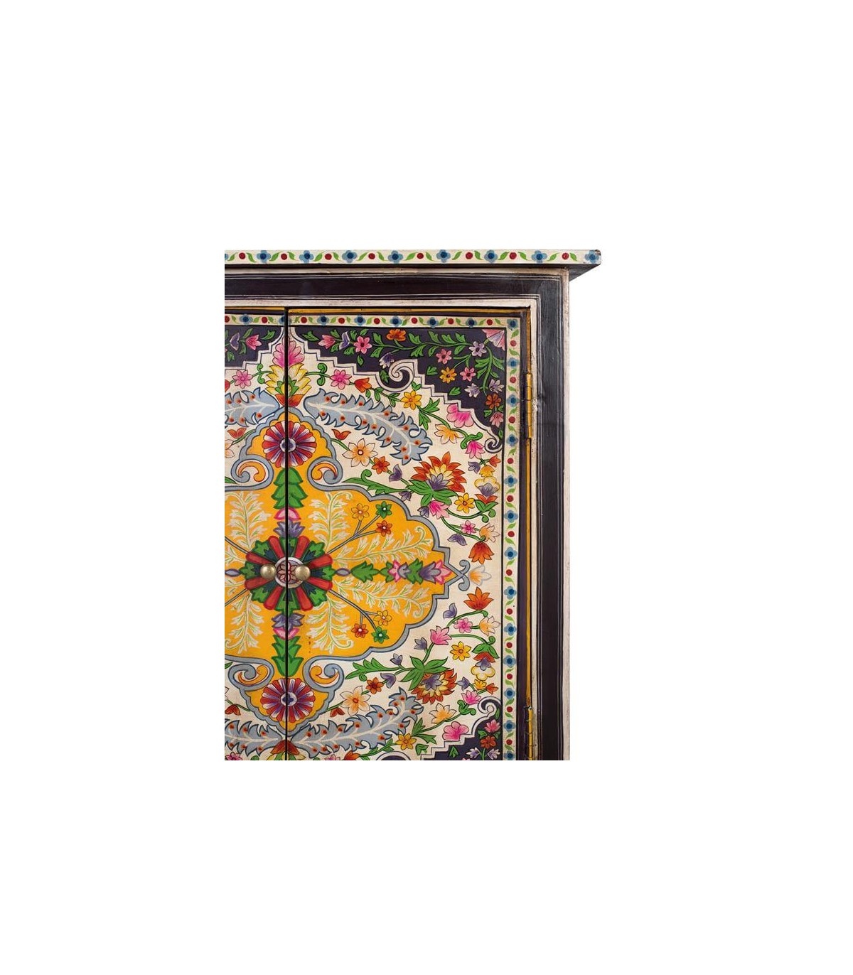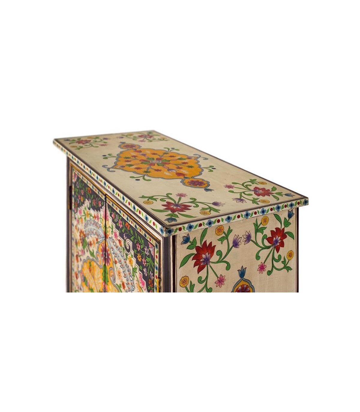 Taquillón 2 puertas de nuestra colección de muebles Arapea, una colección de importación realizada en la india, un mueble de buena calidad trabajado en madera maciza y con todos los detalles pintados a mano, una colección perfecta para quien quiere darle un toque étnico a su decoración.