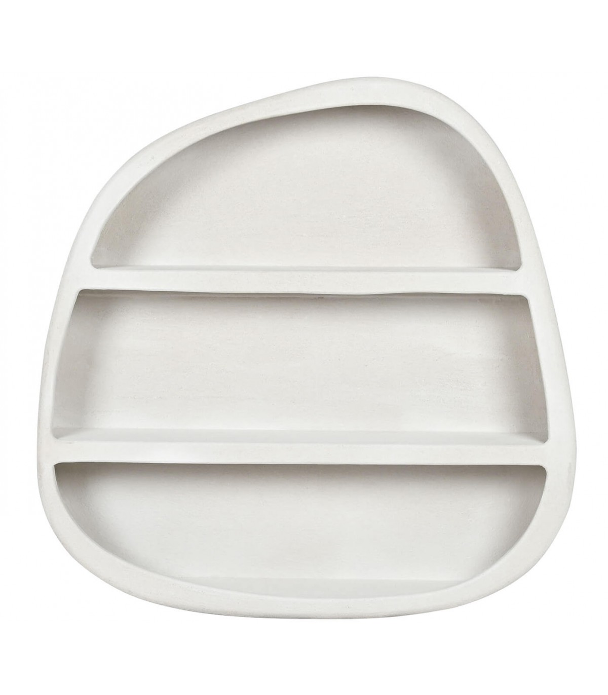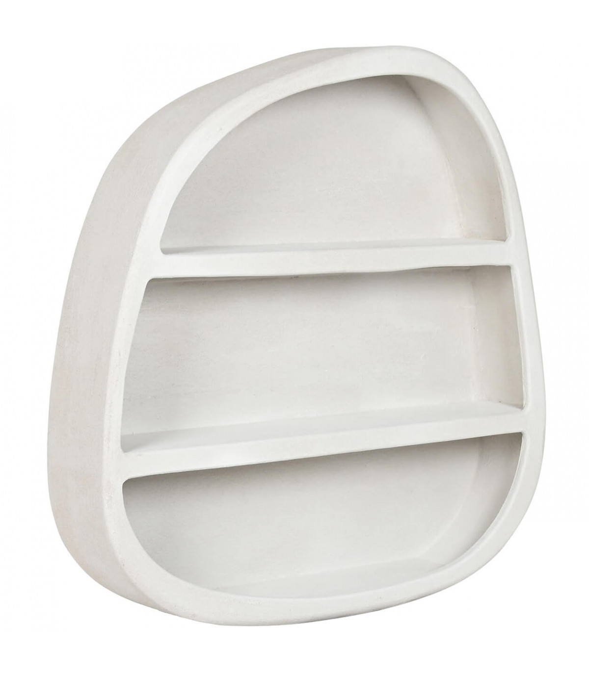 Librería estantería para colgar huecos irregulares, realizada en madera dm efecto yeso color blanco roto, un mueble de estilo ibicenco que le dará frescura y luminosidad a tu decoración con sus formas redondeadas.