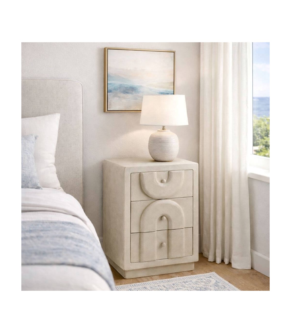 🌾 Mesita de Noche de Poli Resina Beige – Estilo Ibicenco 🪨