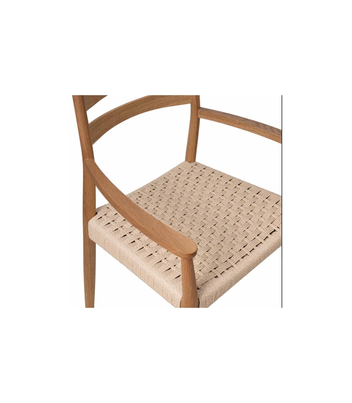 Este encantador sillón de comedor une lo mejor del diseño natural con una comodidad excepcional. Su estructura de madera maciza de roble aporta calidez y solidez, mientras que el asiento trenzado a mano en cuerda natural añade un aire artesanal y ligero.