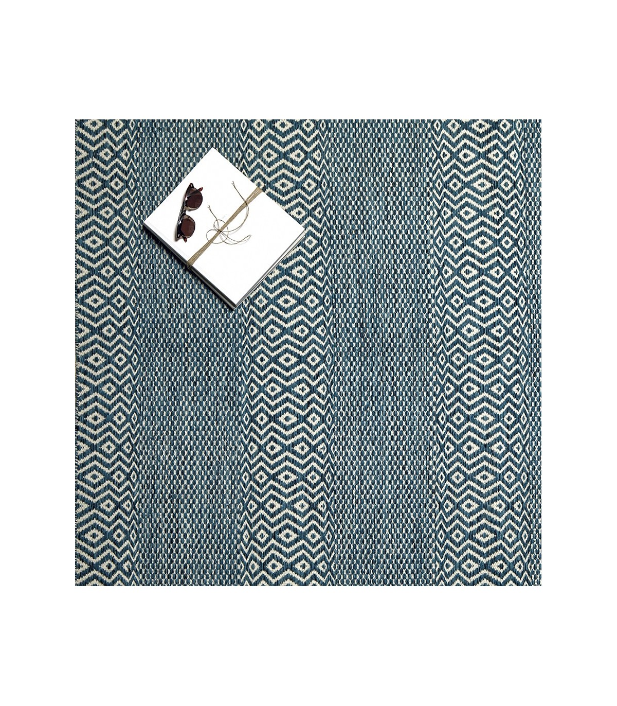 • Acabado, tejida a mano, verde azulado.
