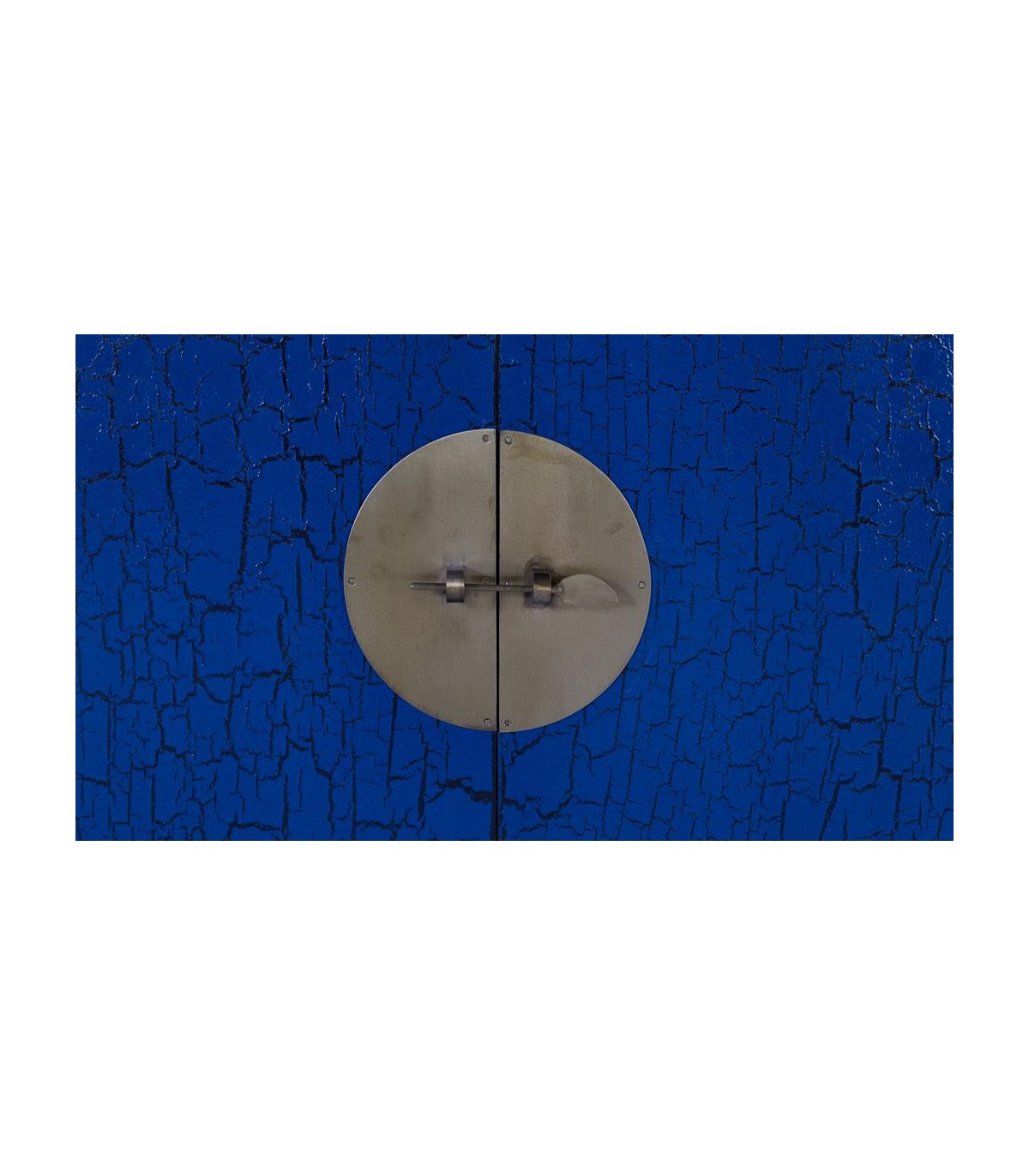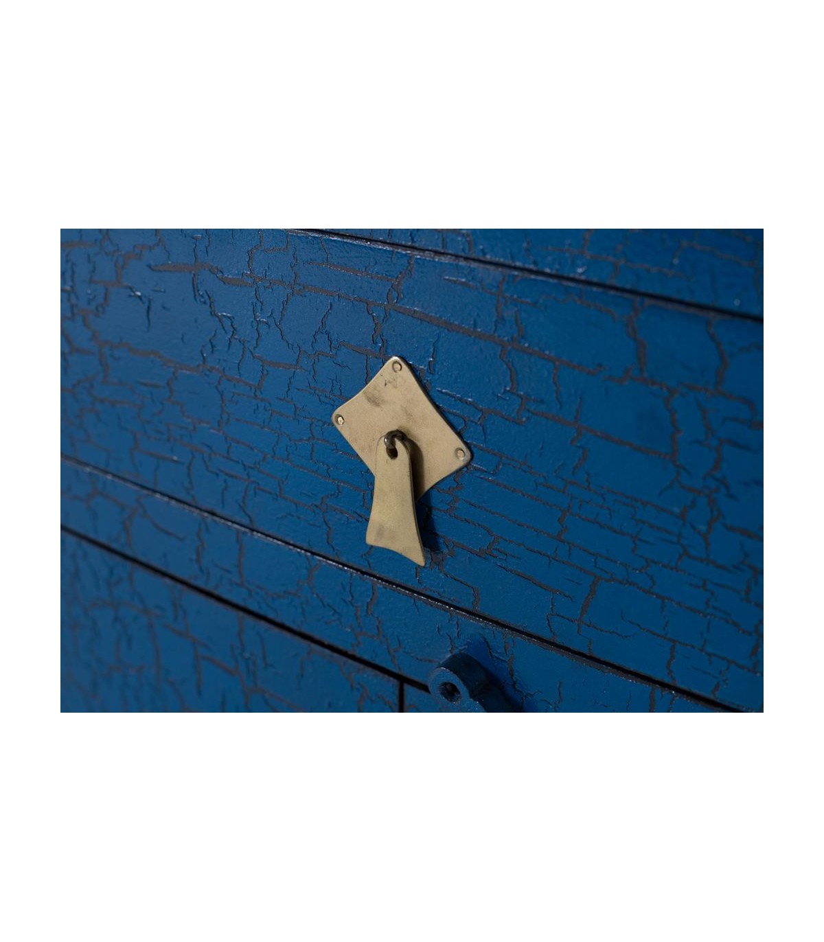 - Acabado, madera lacada craquelé azul con el fondo negro, metal bronce. Fabricación artesanal. entendemos las variaciones de tonalidad, tamaño y forma o ciertas imperfecciones (grietas, nudos, marcas) como un valor añadido que la convierten en pieza única.