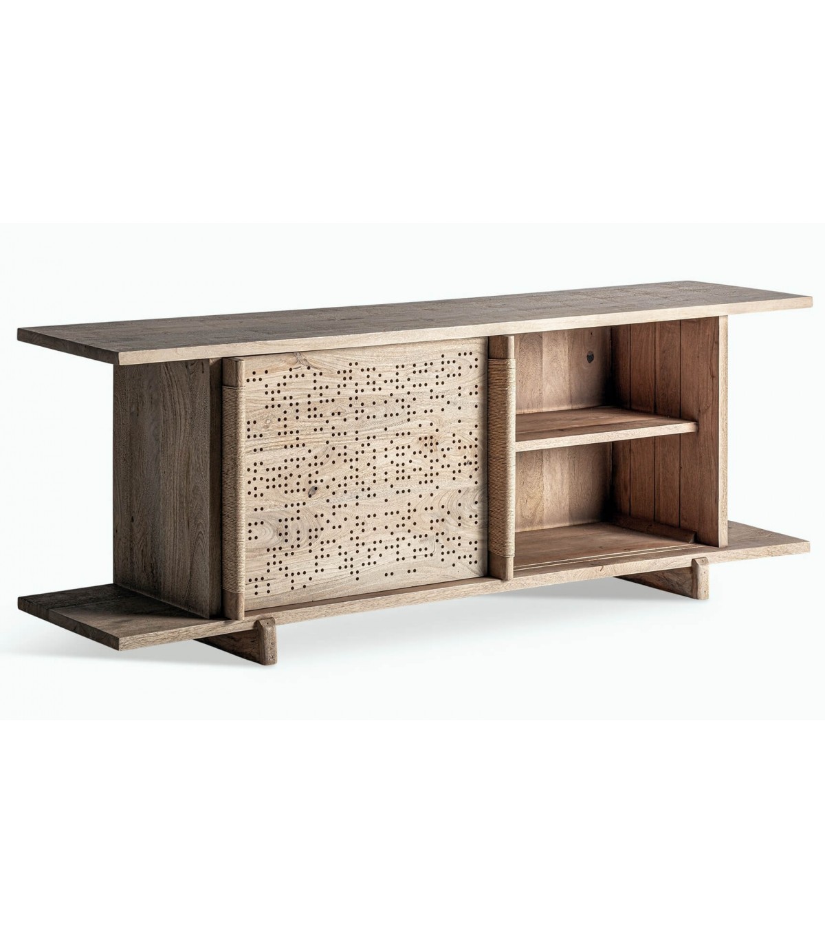 La superficie amplia y sus acabados cuidados aportan textura, autenticidad y un aire orgánico que conecta con la naturaleza, mientras que su interior ofrece gran capacidad de almacenaje y orden. Es un mueble versátil, pensado para convivir con diferentes estilos decorativos y adaptarse tanto a espacios minimalistas como a ambientes creativos, siempre aportando un toque de serenidad y distinción.