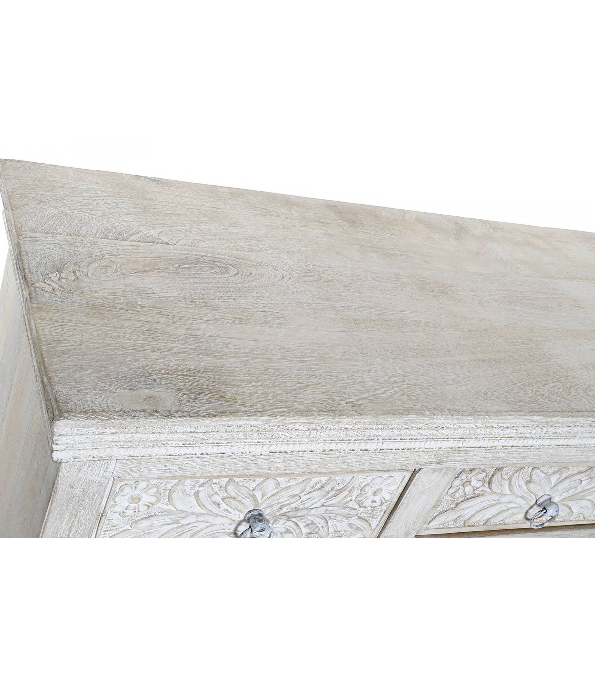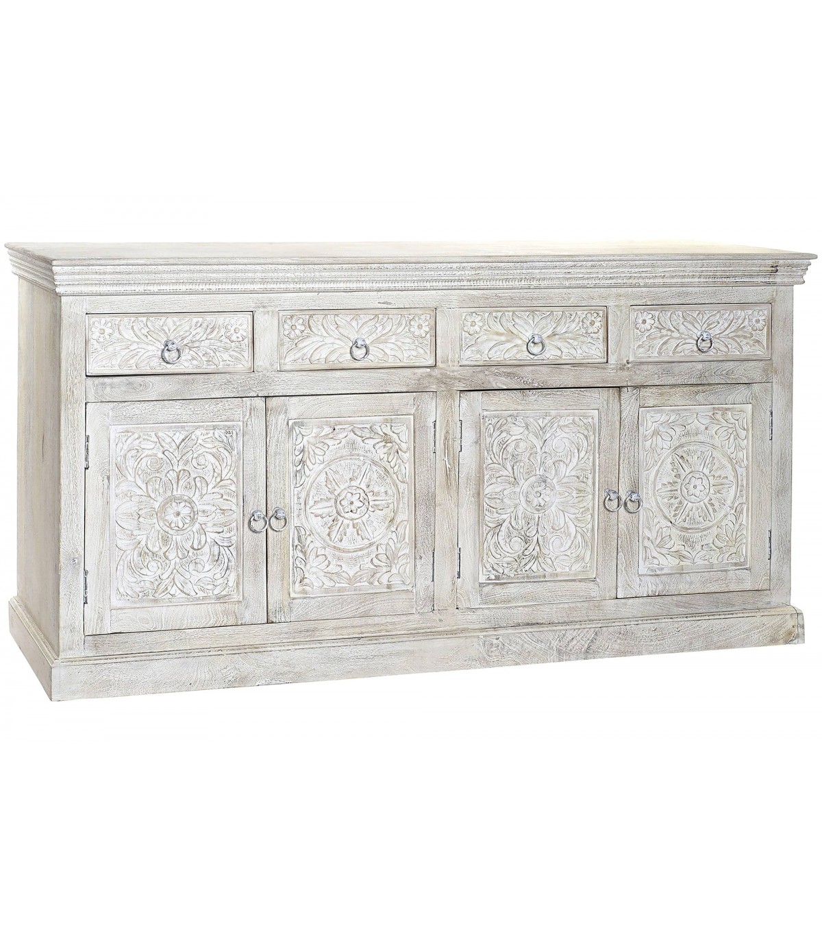 APARADOR 175 X 45 X 90 CALPIE MADERA DE MANGO TALLADA A MANO BLANQUEADA