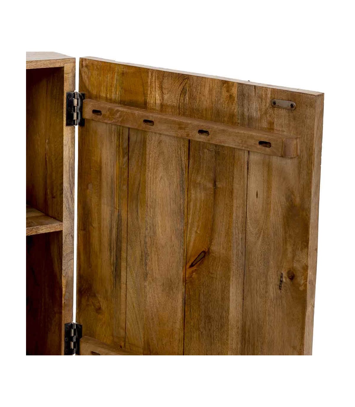 Las dos puertas y los tres cajones ofrecen una combinación equilibrada entre capacidad y estética, ideal para organizar el día a día con carácter decorativo. Una pieza pensada para integrarse en salones o comedores donde se valora el trabajo artesanal y los materiales nobles.