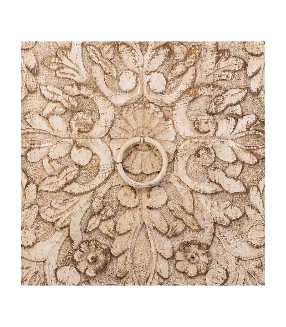 🎨 Acabado: Madera tallada a mano con acabado blanco roto patinado, tiradores metálicos en tono natural. Fabricación artesanal. entendemos las variaciones de tonalidad, tamaño y forma o ciertas imperfecciones (grietas, nudos, marcas) como un valor añadido que la convierten en pieza única.