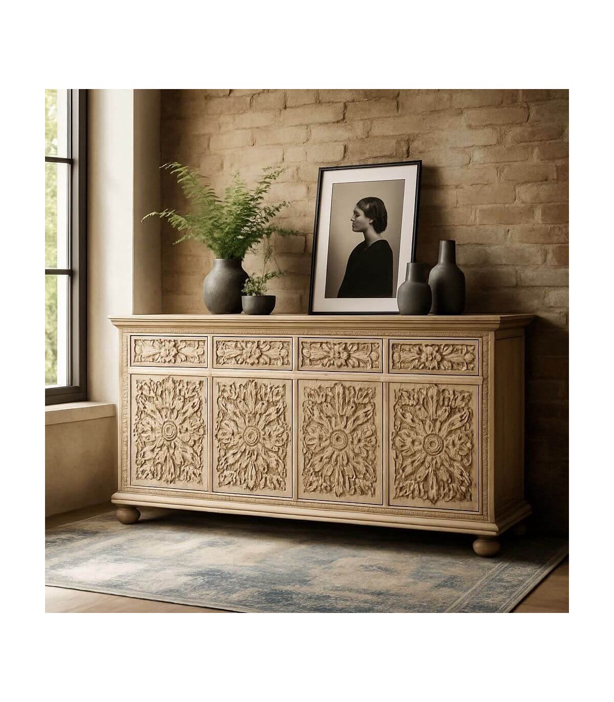 Aparador, 4 puertas, 4 cajones, estilo étnico.