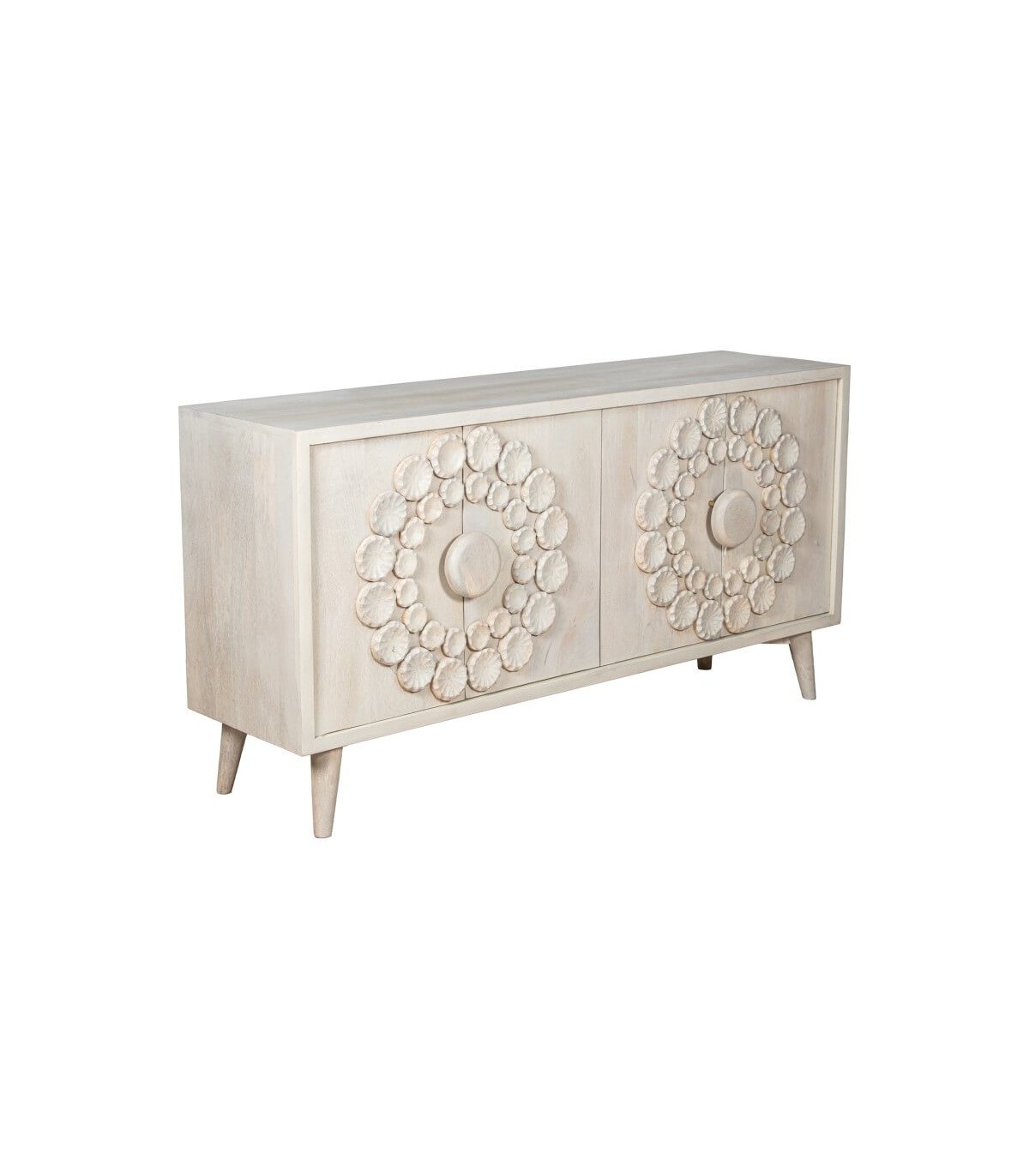 🪶 Aparador Mediano de Madera Tallada Blanqueada – Estilo Étnico 🪶