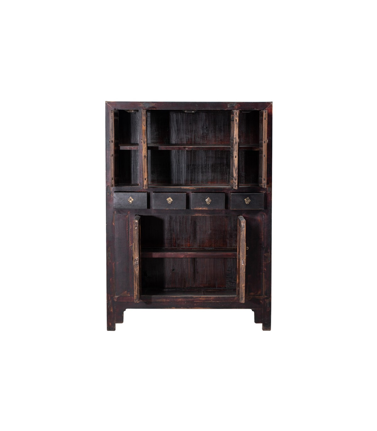Este armario, fabricado artesanalmente, es un reflejo de la tradición y el cuidado en los detalles, con variaciones naturales en su tonalidad, tamaño y forma. Las grietas, nudos y marcas propias de su antigüedad no son imperfecciones, sino que realzan su autenticidad y lo convierten en una pieza única de gran valor. Perfecto para quienes buscan muebles con historia y personalidad, este armario alacena oriental es ideal para almacenar, organizar y, sobre todo, decorar con estilo.