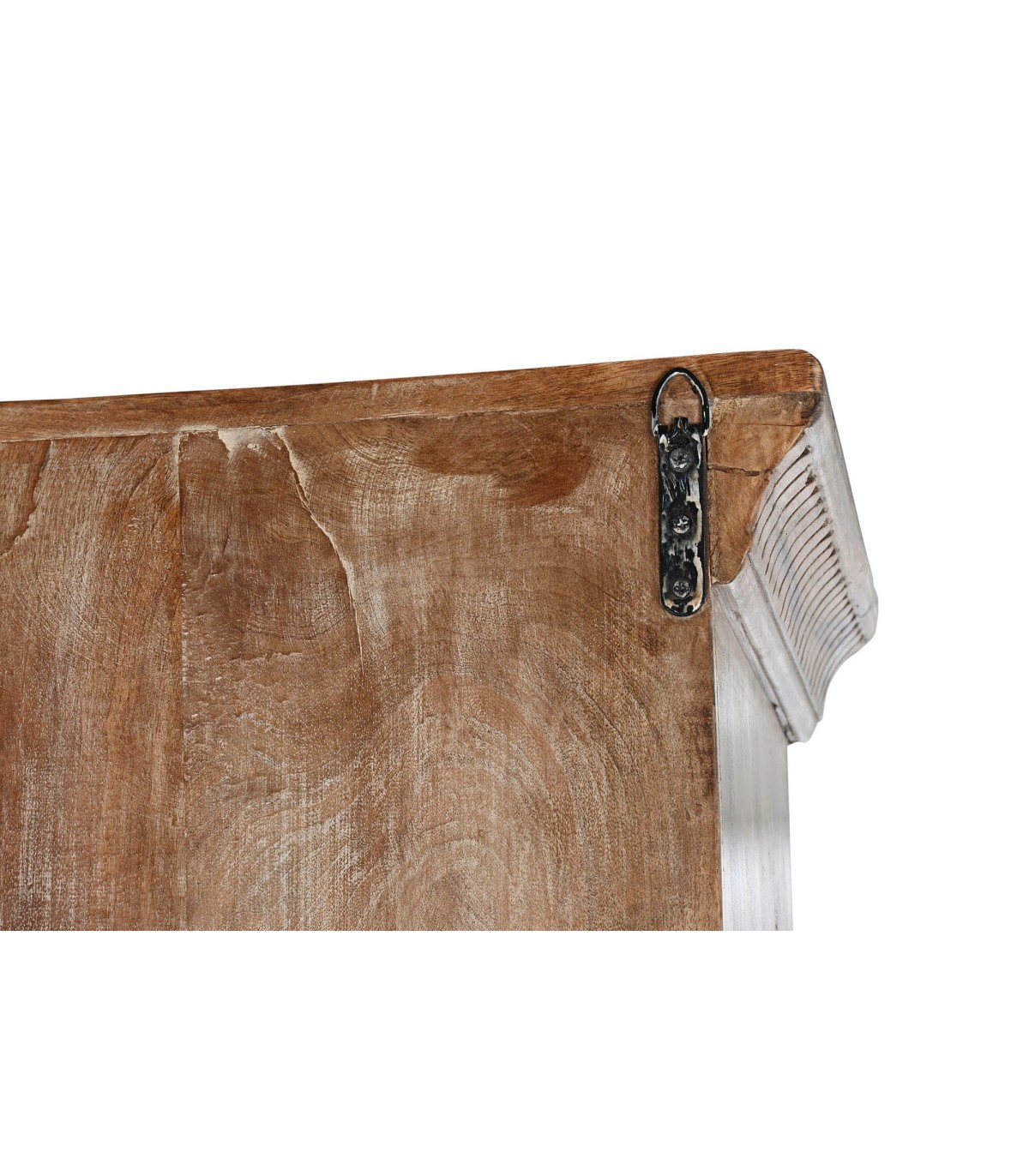Acabado, madera natural tallada a mano acabado envejecido, herraje acabado óxido a juego. Fabricación artesanal. entendemos las variaciones de tonalidad, tamaño y forma o ciertas imperfecciones (grietas, nudos, marcas) como un valor añadido que la convierten en pieza única.