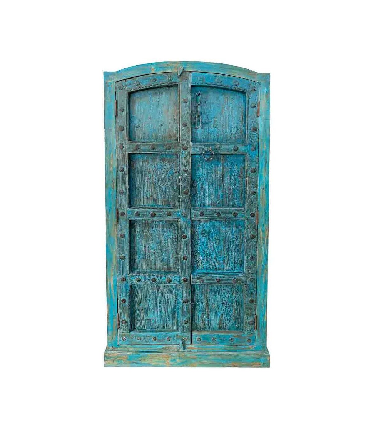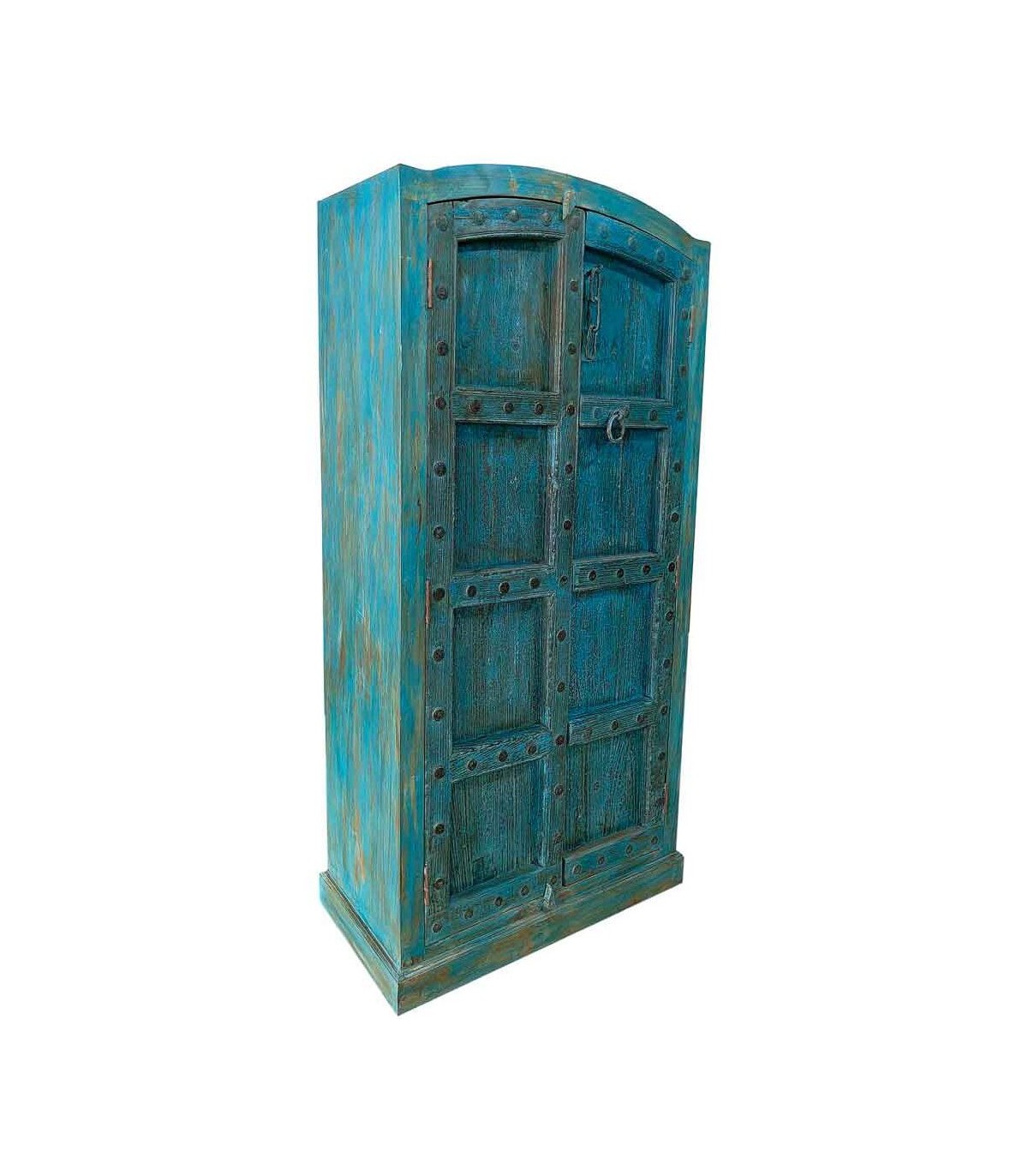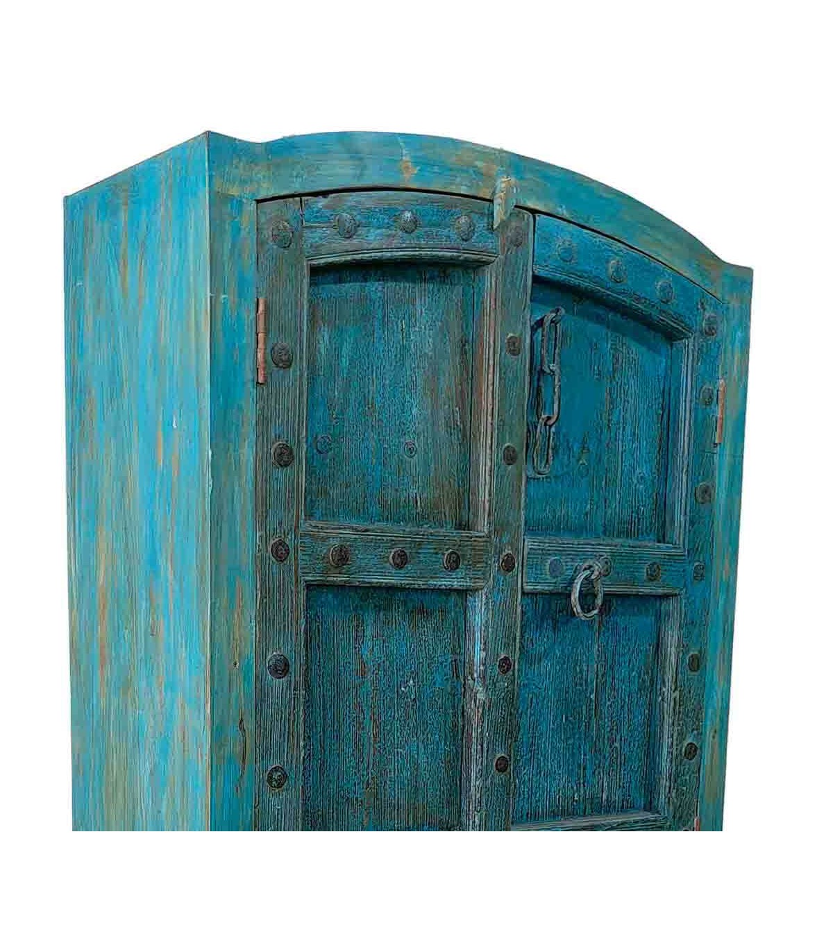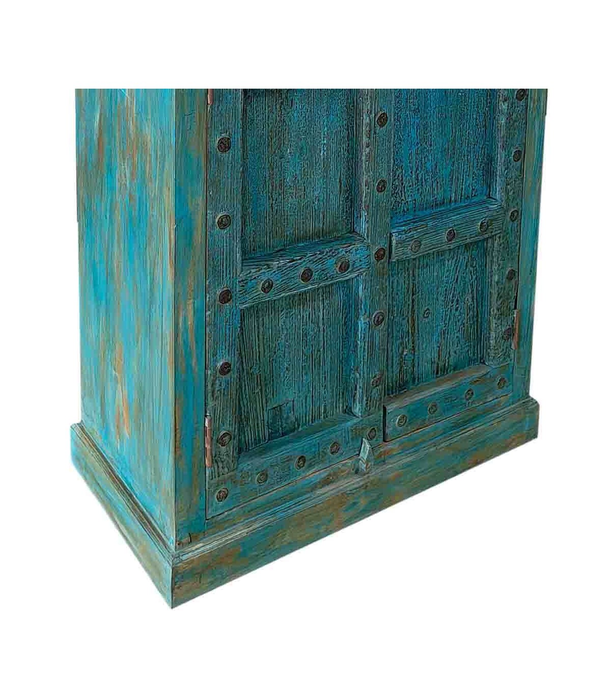 Armario Alacena Antiguo de Madera Maciza en Azul Envejecido: Un Tesoro Único para Tu Hogar