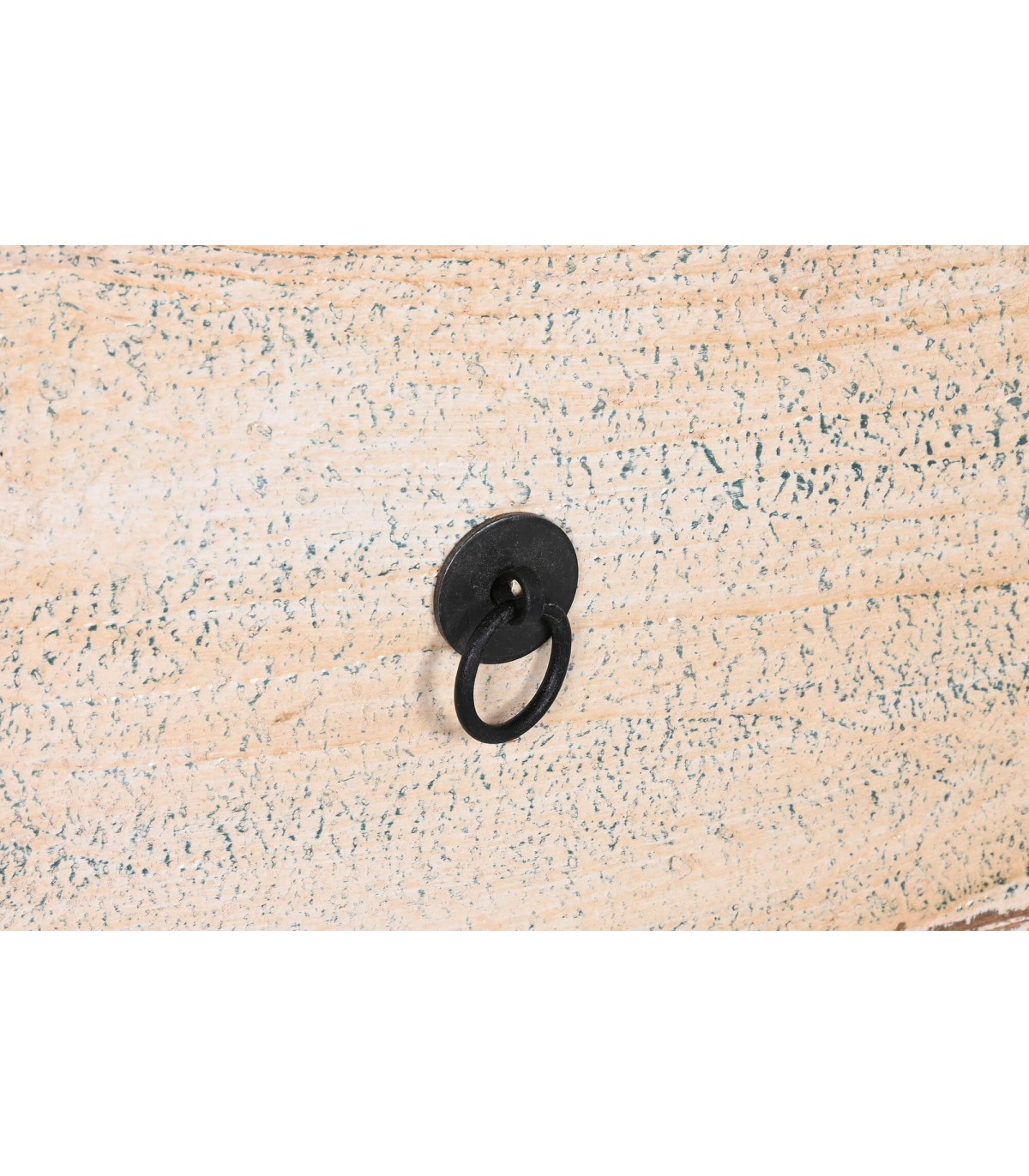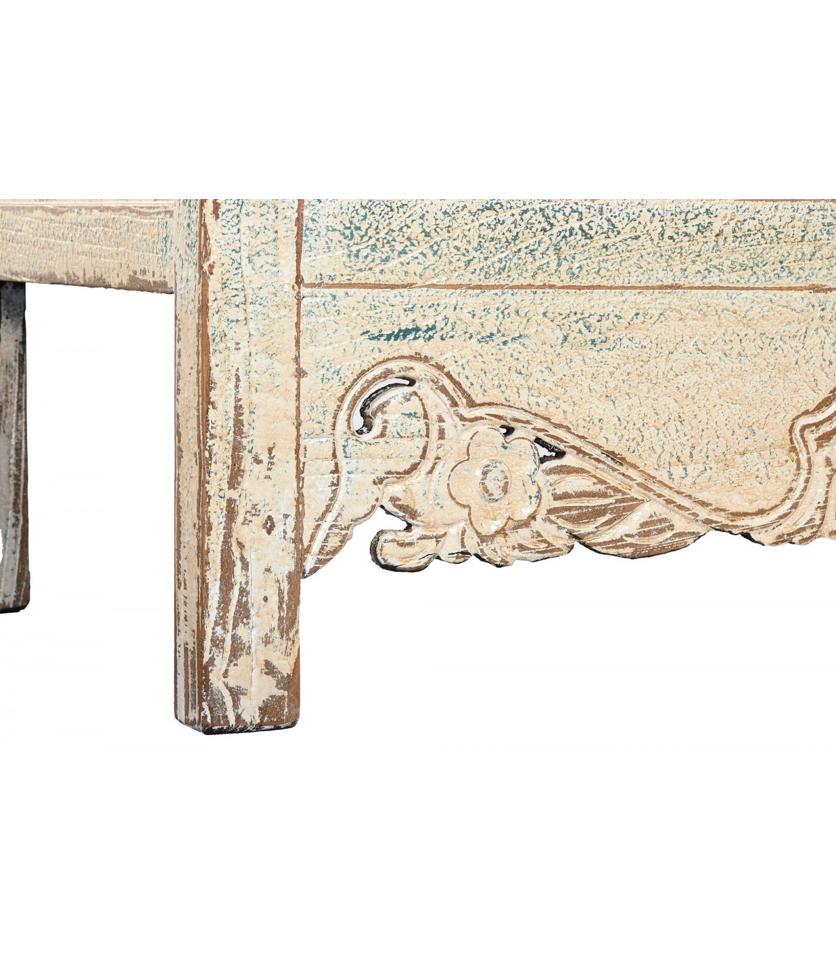 🎨 Acabado: Decapado blanco roto sobre azul, talla artesanal, herrajes bronce. Fabricación artesanal. entendemos las variaciones de tonalidad, tamaño y forma o ciertas imperfecciones (grietas, nudos, marcas) como un valor añadido que la convierten en pieza única.