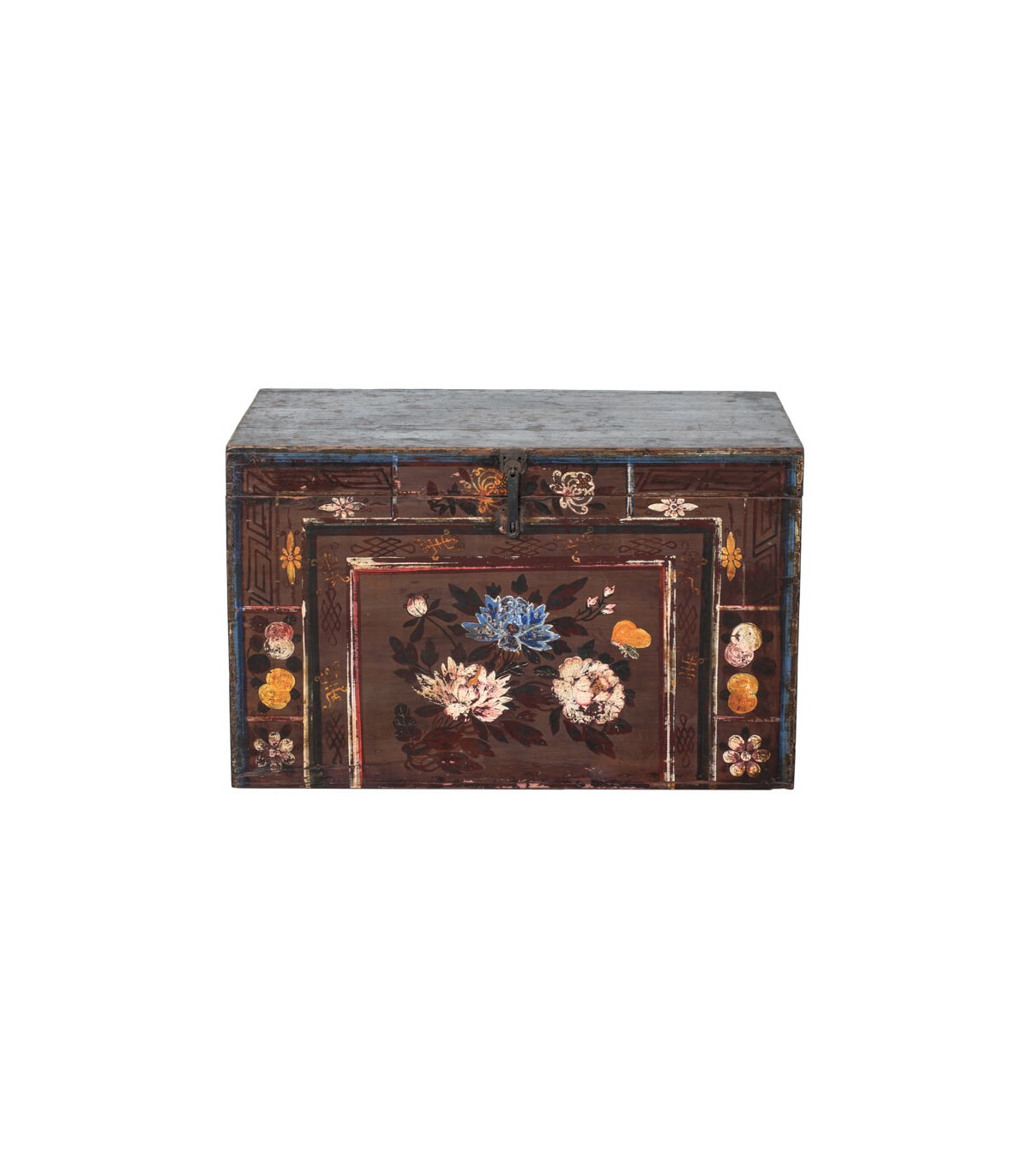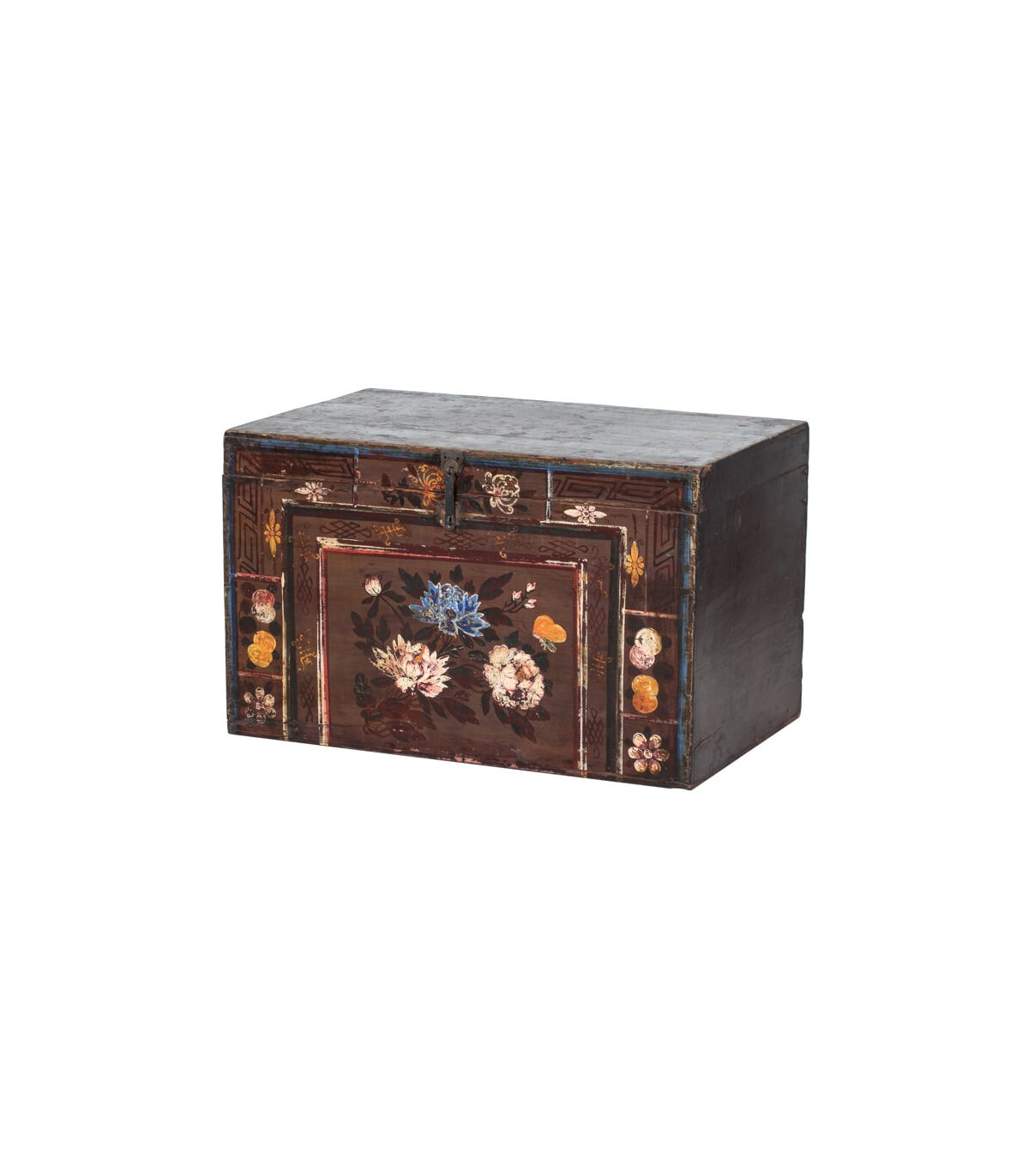 🧧 Baúl Antiguo Decorado a Mano – Estilo Oriental con Herrajes en Bronce ✨