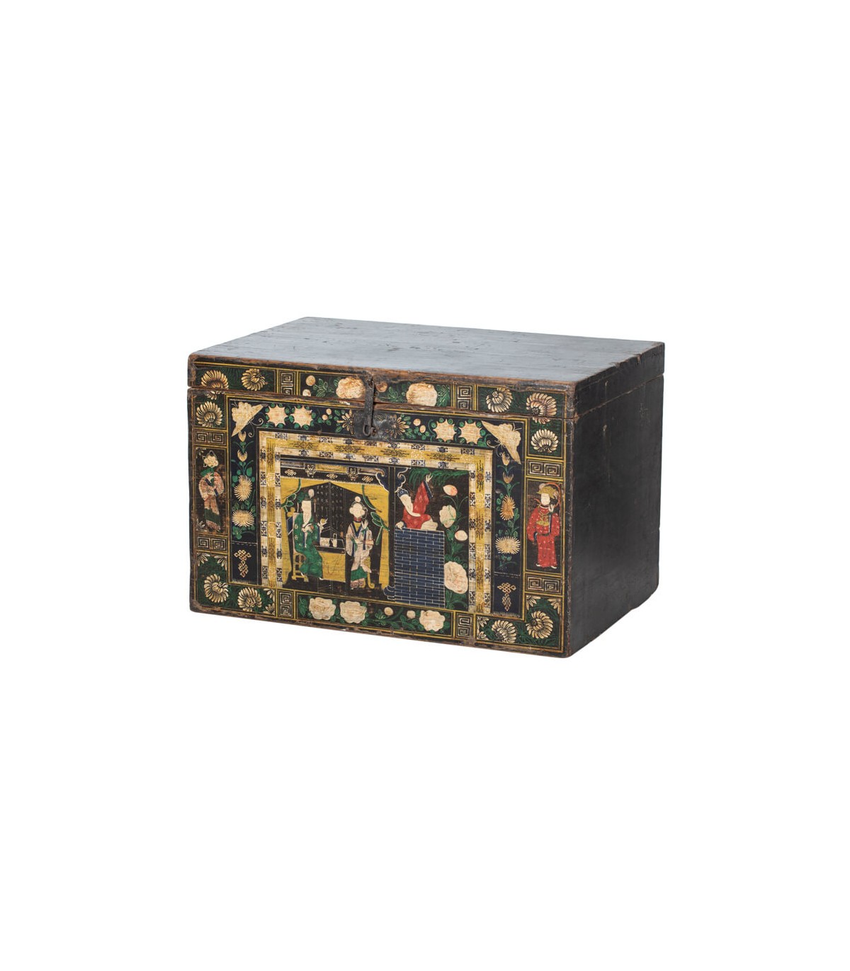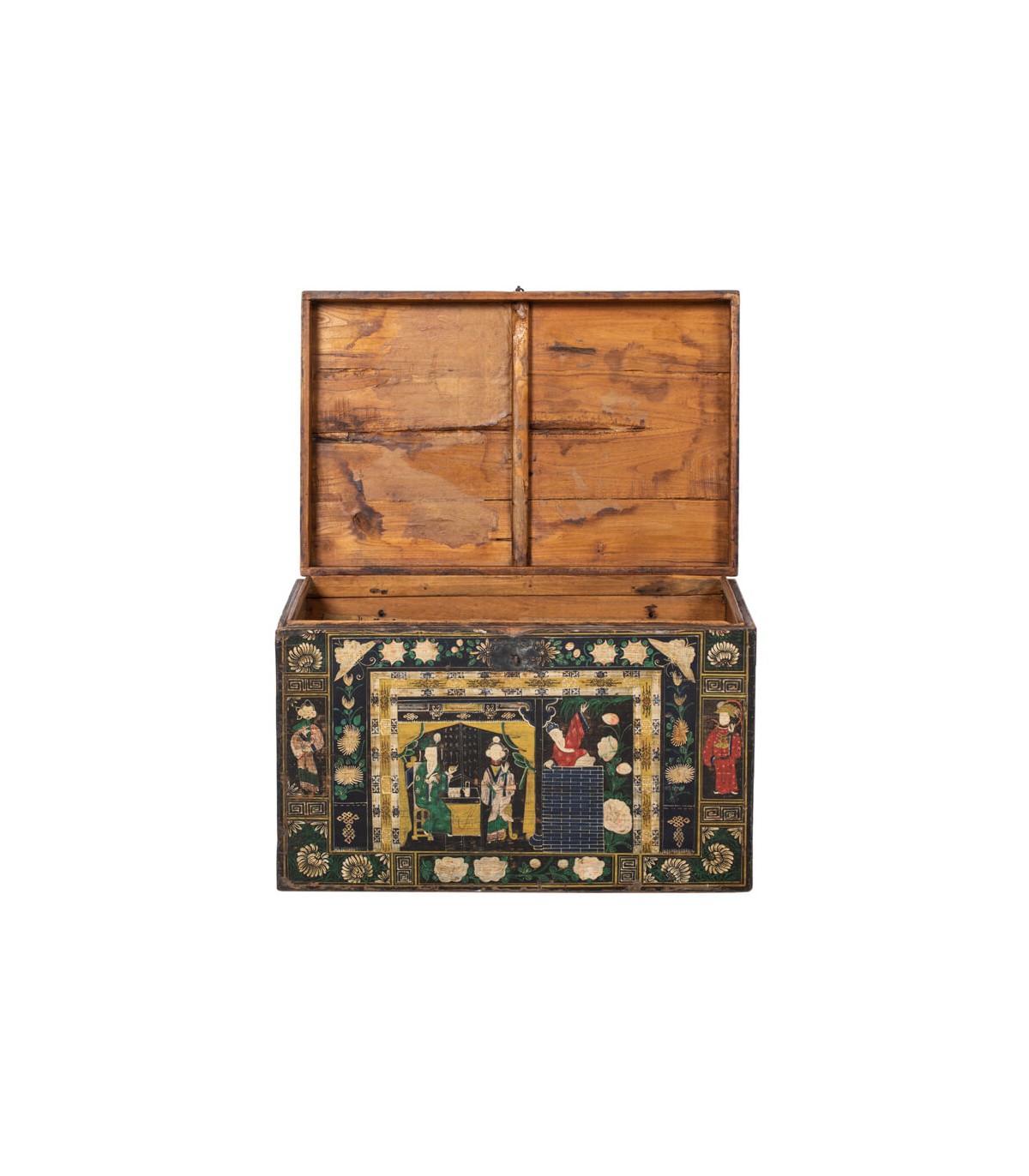 Añade un toque histórico y exclusivo a tu hogar con este baúl antiguo de más de 100 años, una joya del estilo oriental. Fabricado en madera maciza de sicomoro y decorado a mano con exquisitos detalles multicolor, cada trazo refleja su autenticidad y valor artesanal.