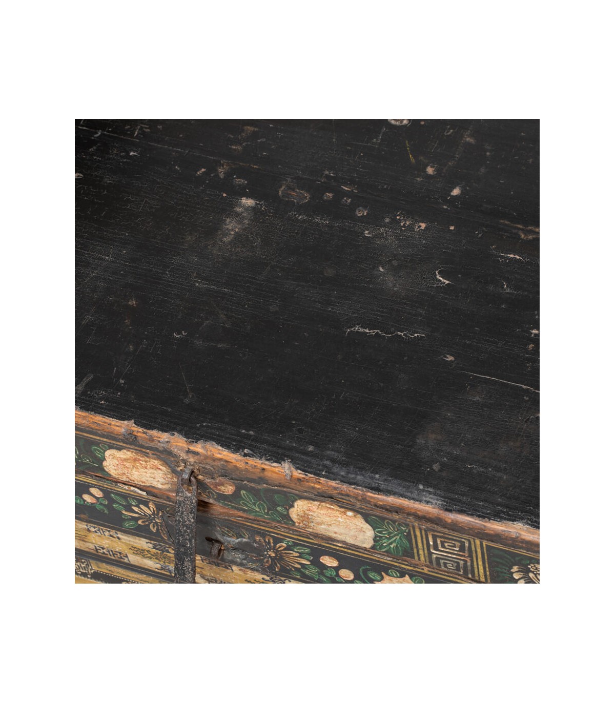 BAUL ANTIGUO 89 X 58 X 58 MUSIN NEGRO MADERA DECORADA A MANO