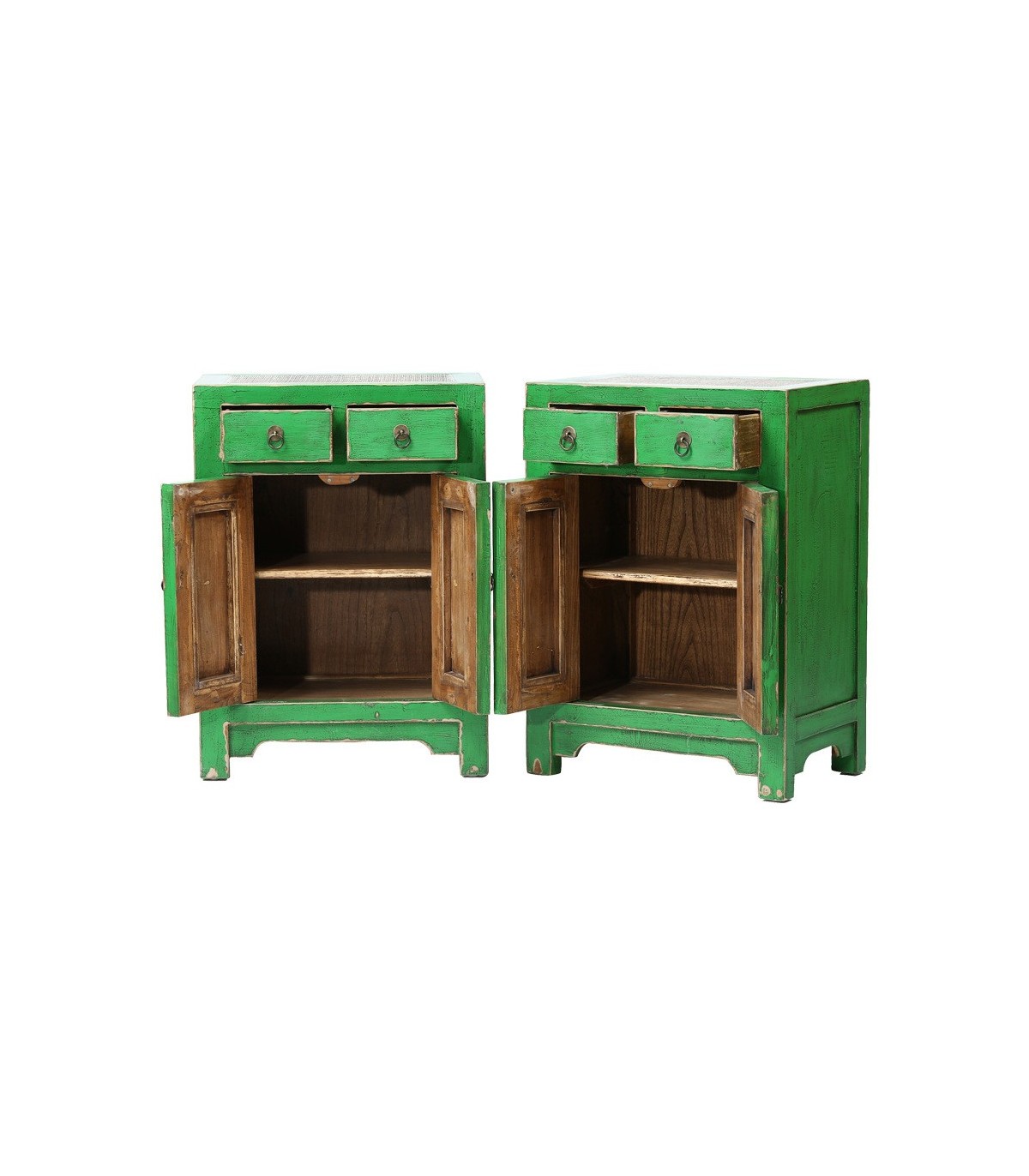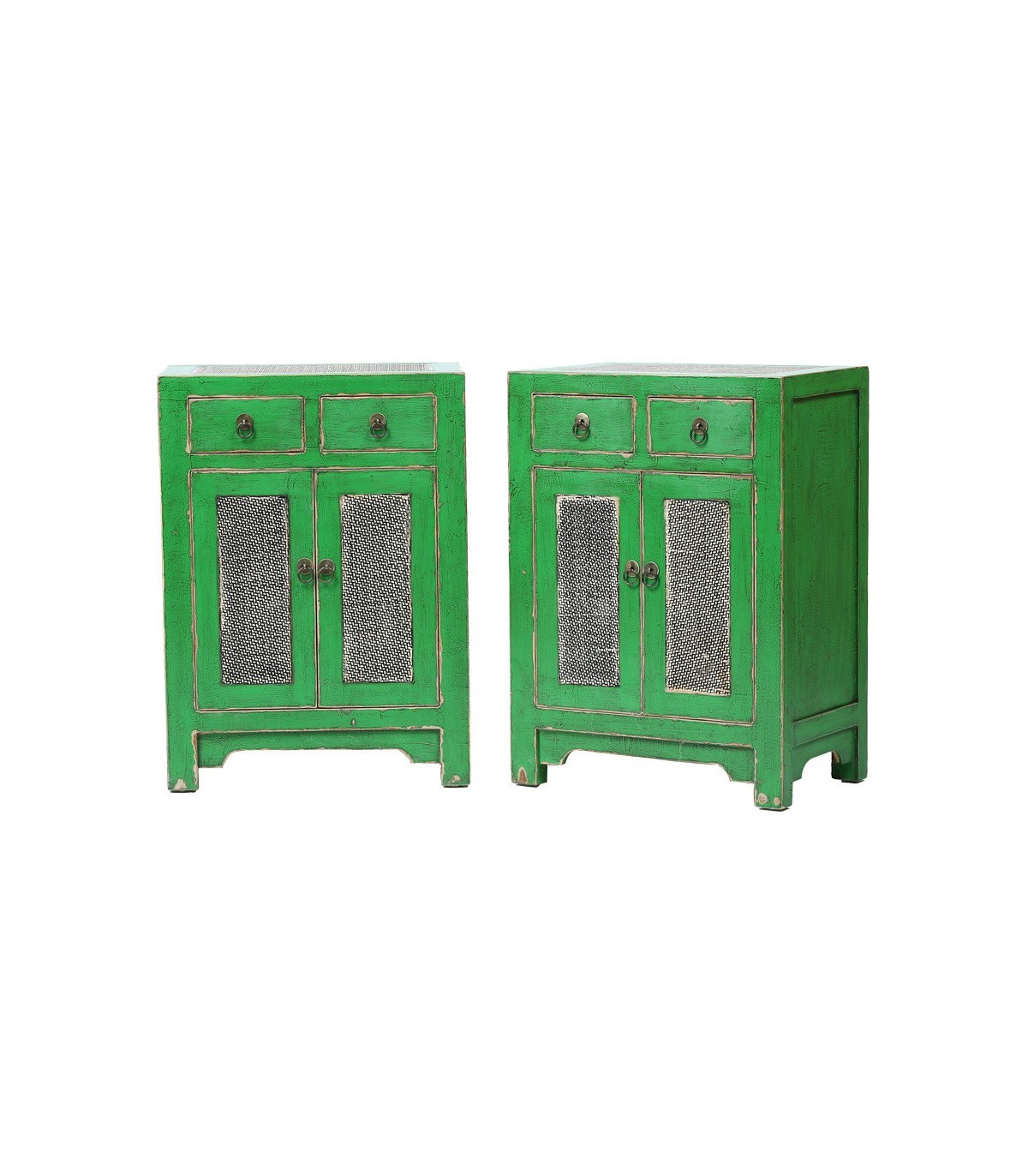 - Conjunto de 2 mesitas de noche, inseparables, 2 cajones, 2 puertas, estilo oriental.