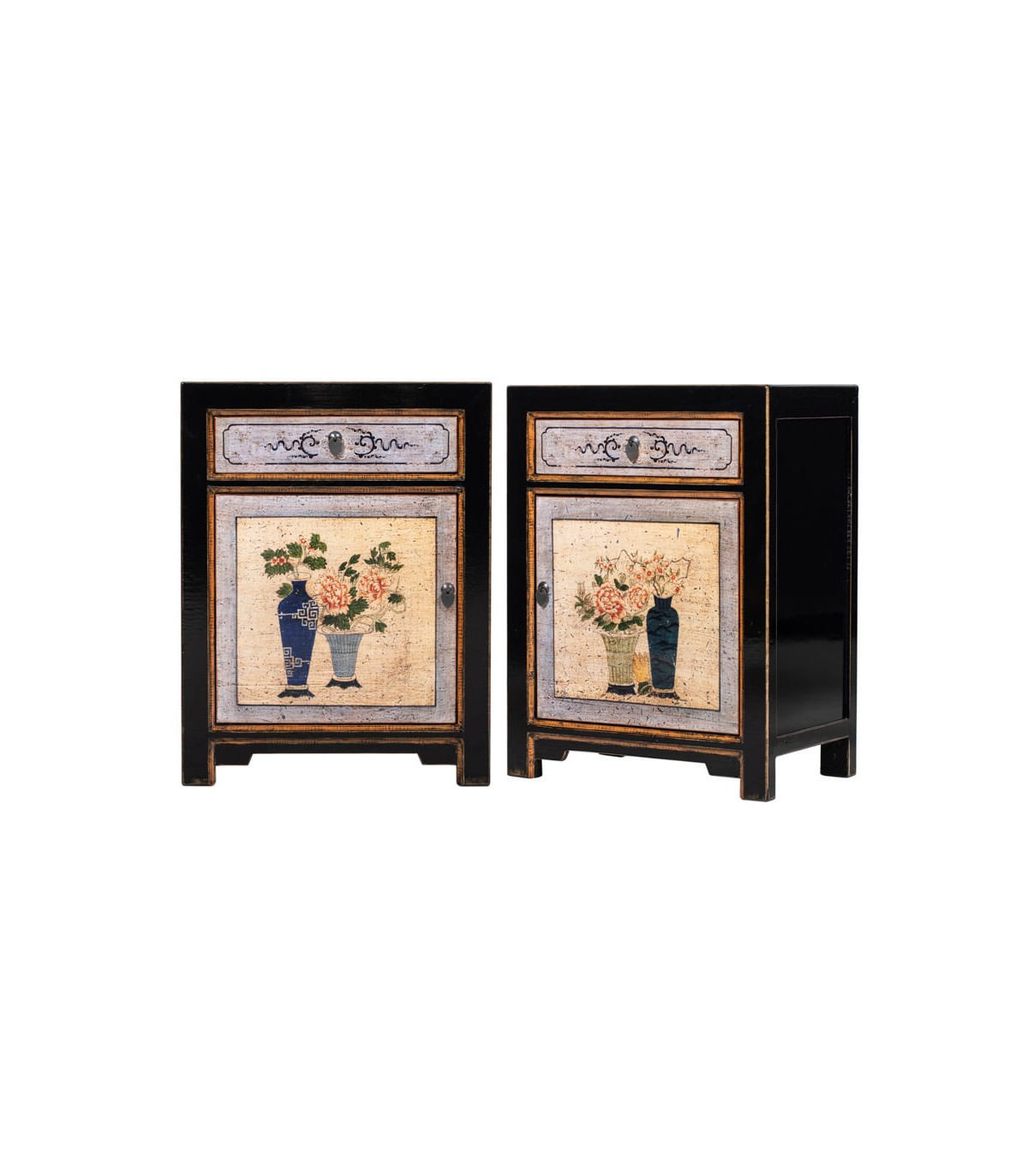 CONJUNTO 2 MESITAS DE NOCHE 45 X 35 X 60 JARRONES MADERA DECORADA A MANO