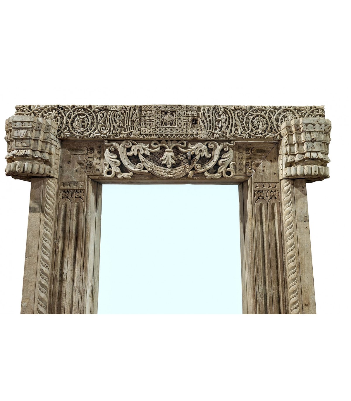 Aporta un toque de exclusividad y elegancia a tu hogar con este espejo vestidor XXL de madera de teca, una pieza única de estilo étnico con impresionantes tallas antiguas.