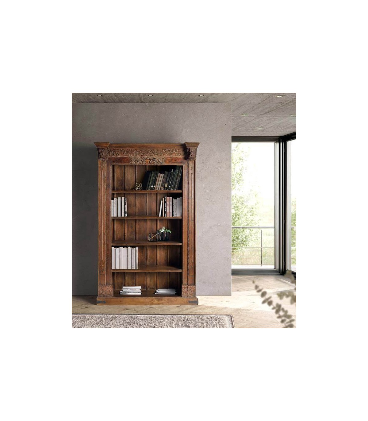 Ideal para quienes buscan una librería con alma, robusta y con mucha presencia. Perfecta tanto en espacios rústicos como en interiores contemporáneos que deseen integrar elementos exóticos con elegancia.