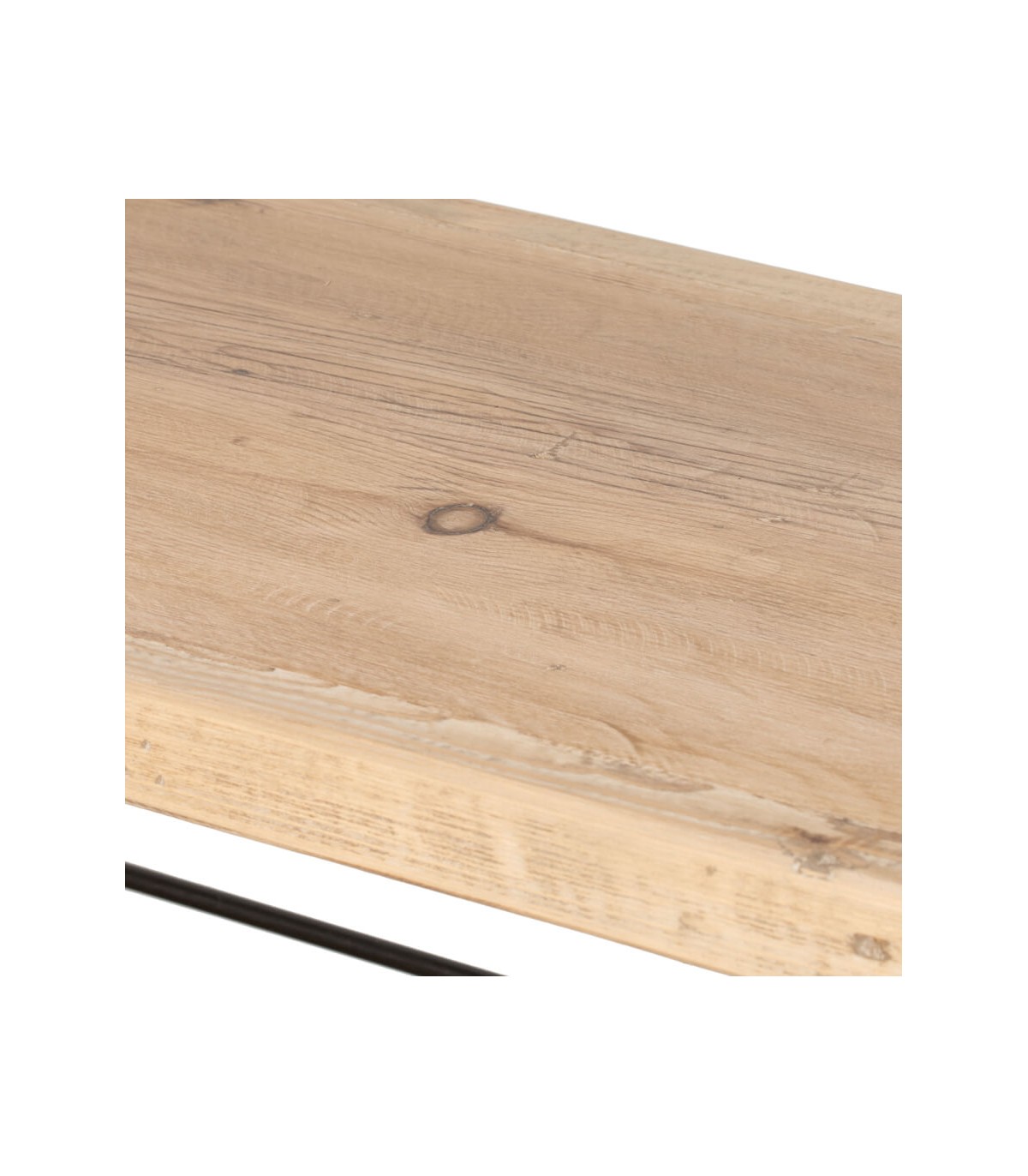 Incorpora discretos tensores metálicos traseros y ruedas unidireccionales de hierro envejecido que facilitan el desplazamiento. Su diseño abierto y simétrico aporta ligereza visual, incluso en espacios amplios. Una pieza que destaca por su versatilidad y personalidad, ideal tanto para hogares como para espacios comerciales. Estilo urbano con calidez rústica en un solo mueble.
