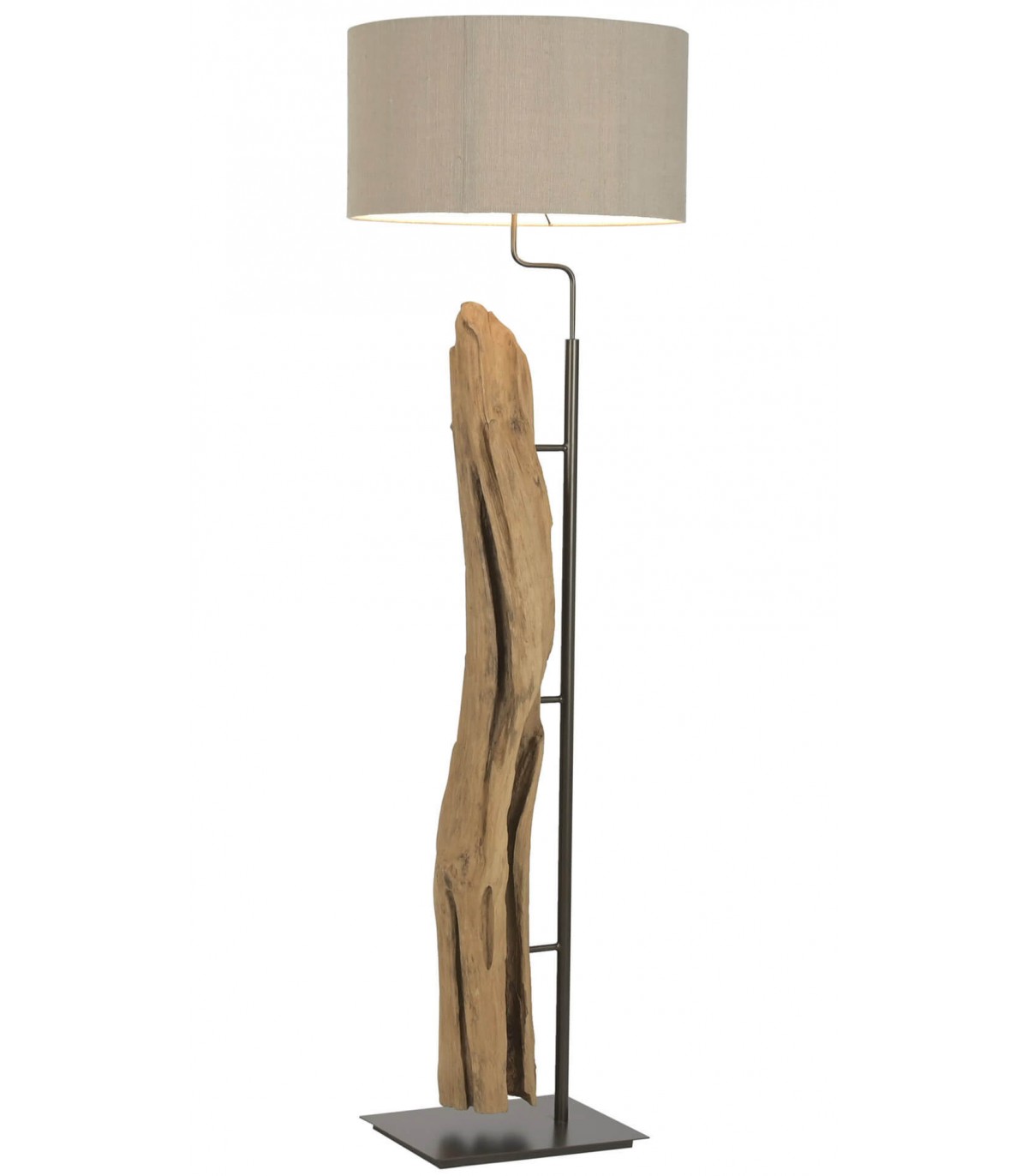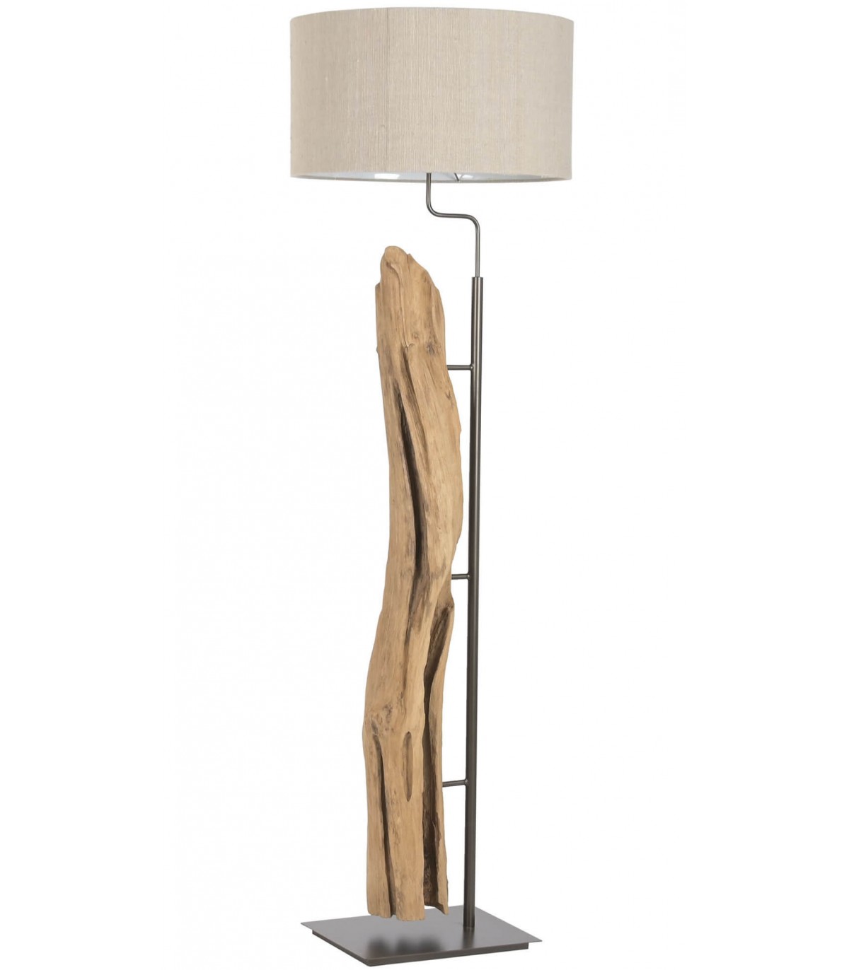 LAMPARA PIE XL 60 Ø X 180 TROCAL MADERA NATURAL METAL Y TEXTIL LINO