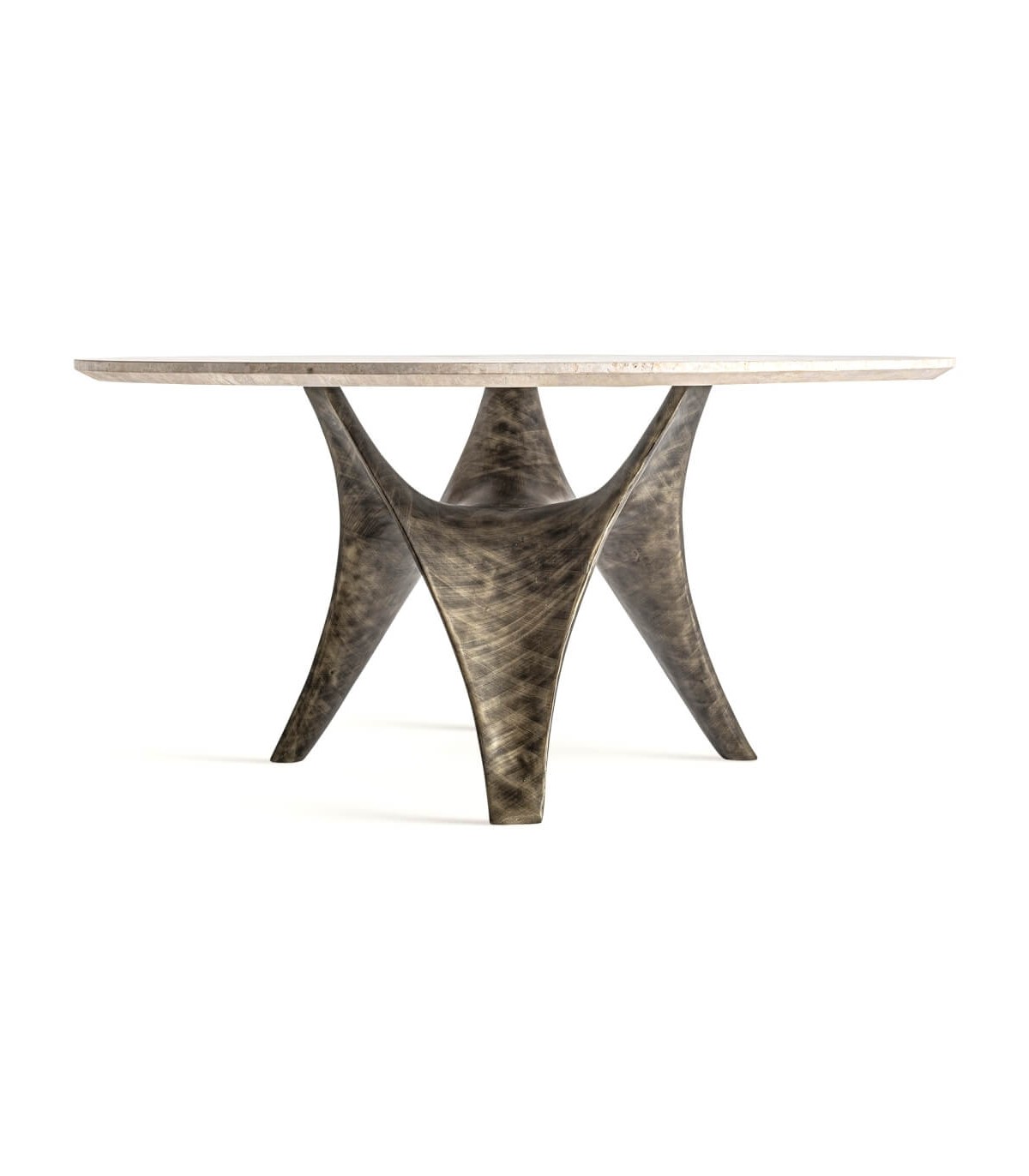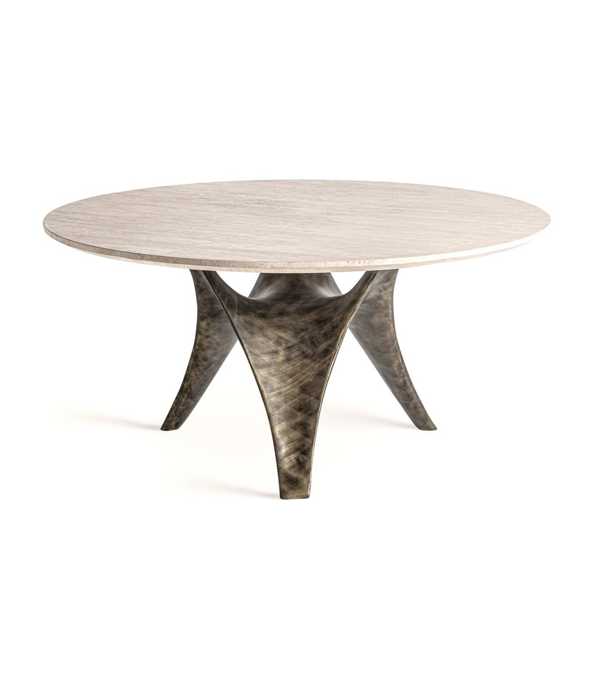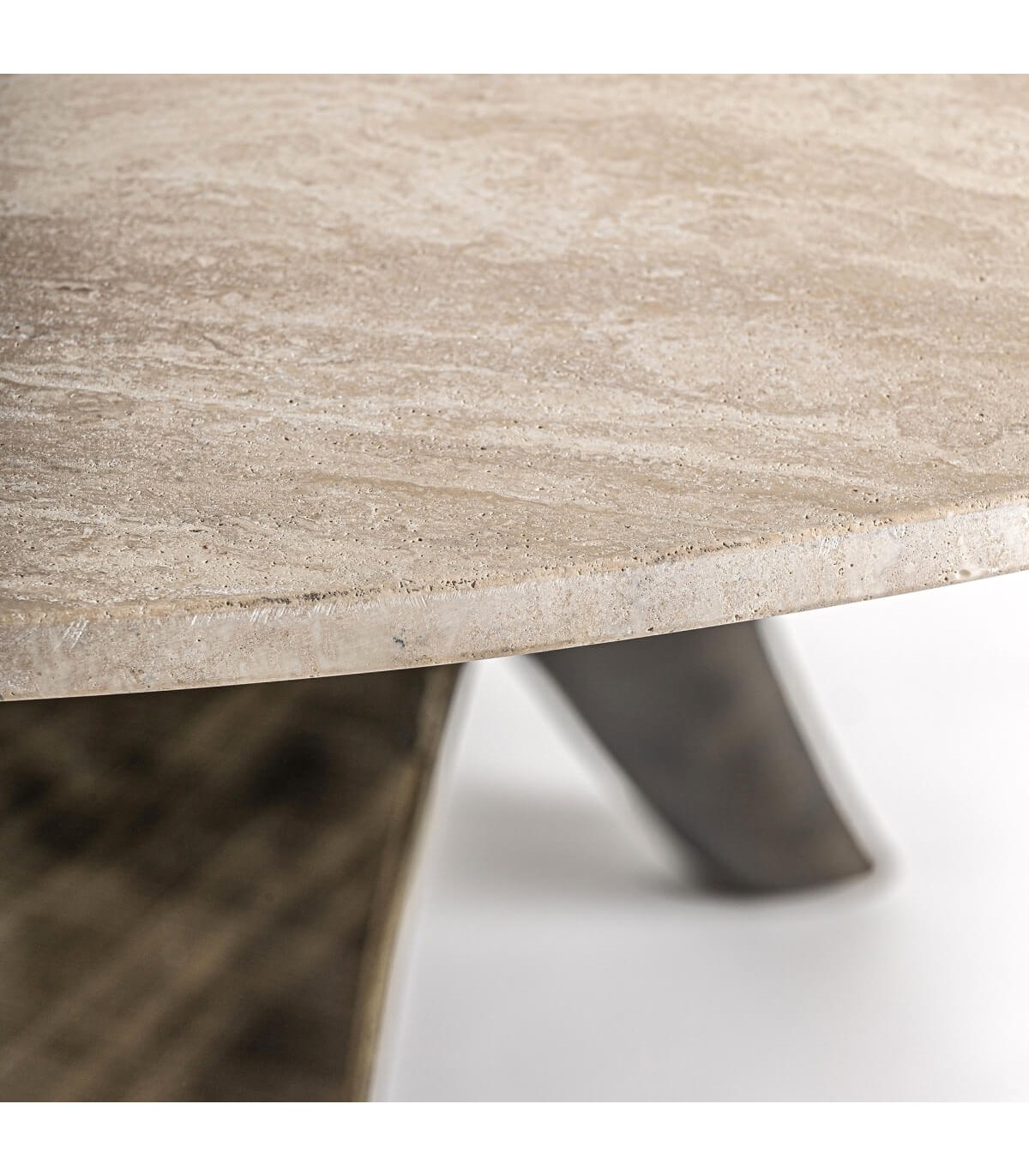 MESA DE COMEDOR REDONDA XL 150 Ø X 75 LAZIA ACERO Y TRAVERTINO
