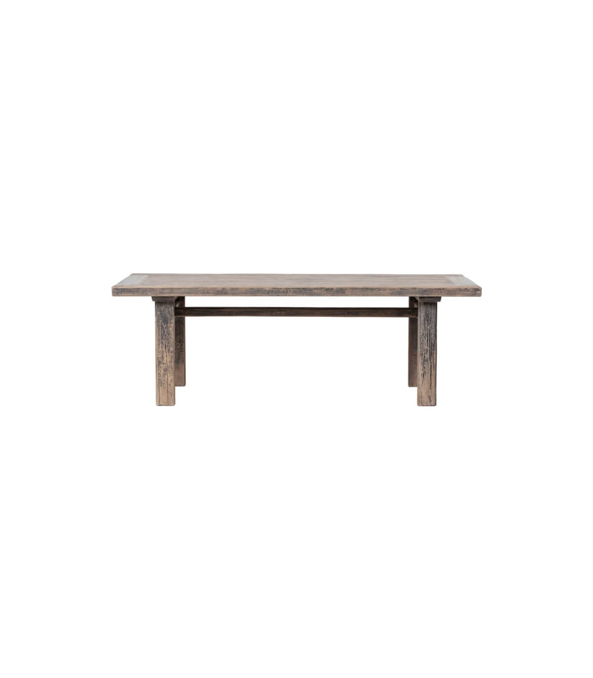 Aporta carácter y autenticidad a tu comedor con esta impresionante mesa de estilo rústico oriental. Fabricada en madera maciza de pino, su diseño robusto y artesanal destaca por un sutil decapado en color negro, realzando su belleza natural.