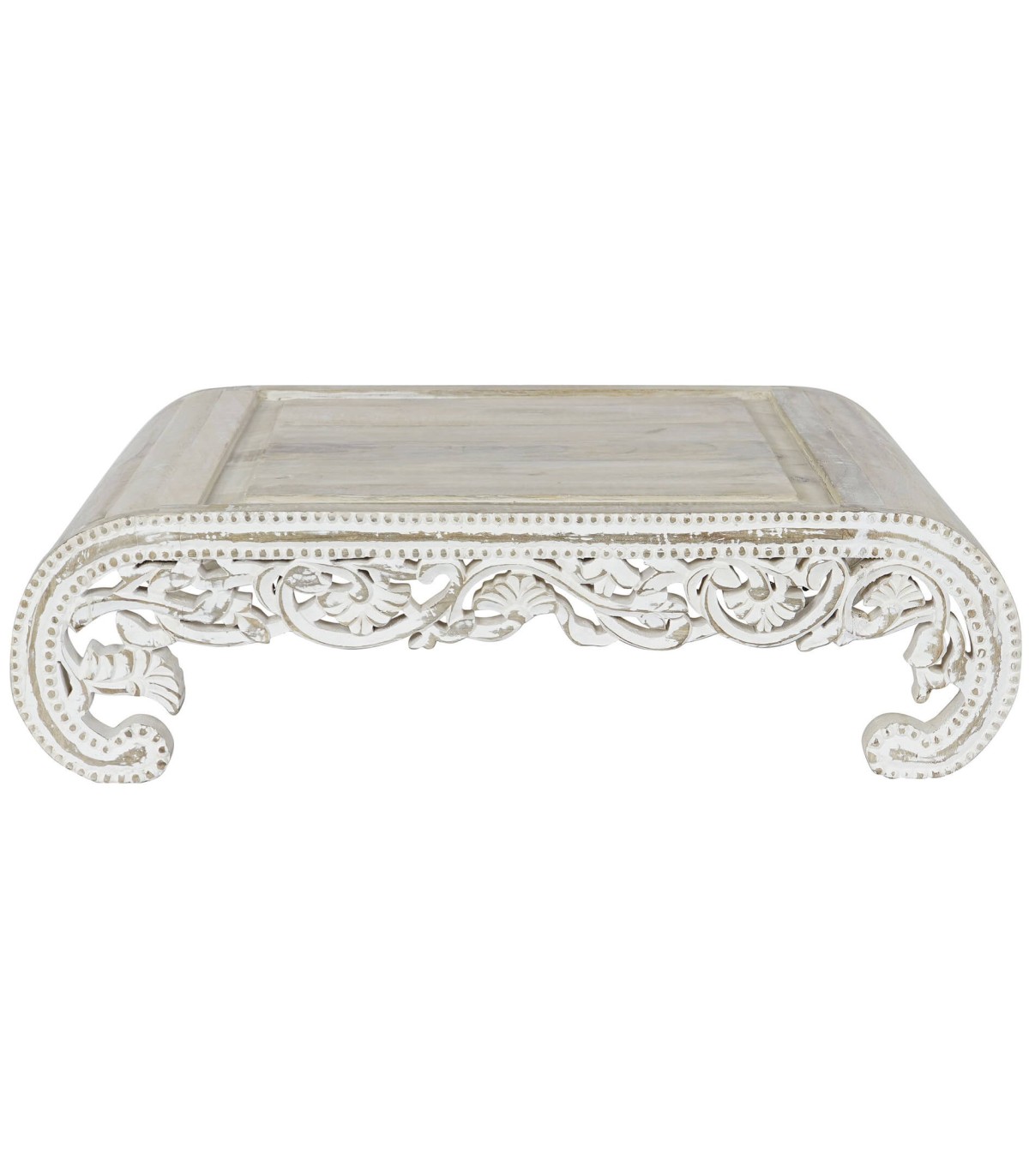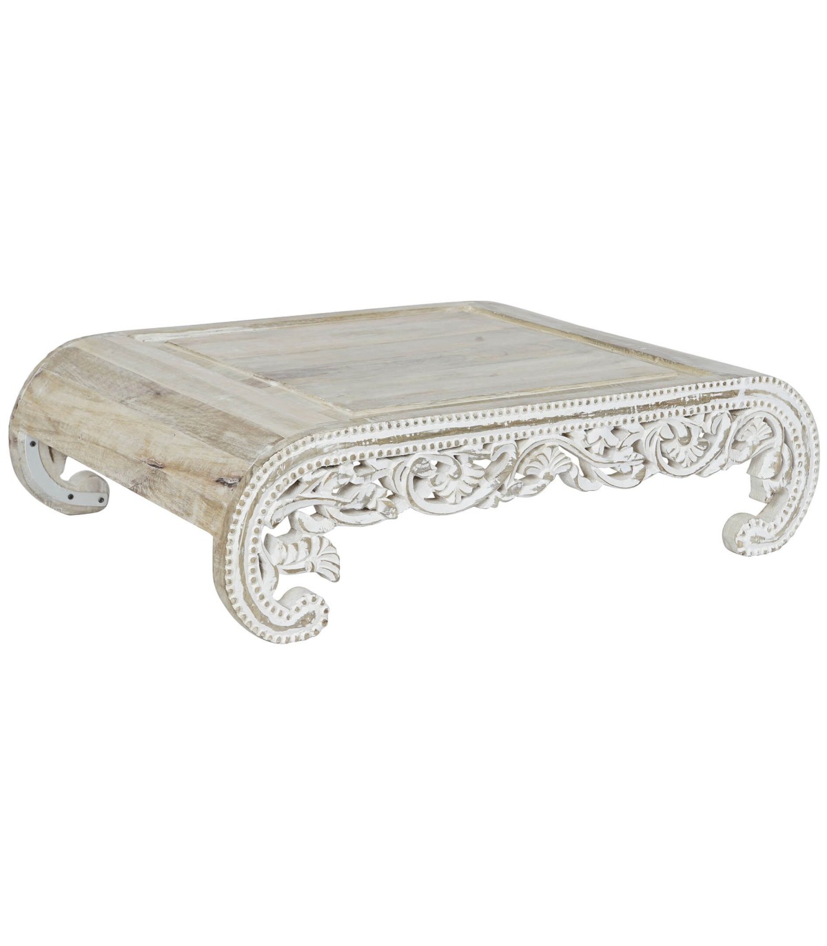 Mesa de centro realizada artesanalmente, tallada a mano sobre madera maciza de mango, una mesita de centro baja ideal para crear ambientes chill out con cojines en el suelo.