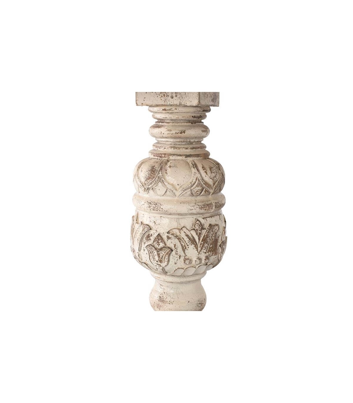 Acabado, artesanal, tapa madera natural, pies madera tallada acabada en blanco vintage.