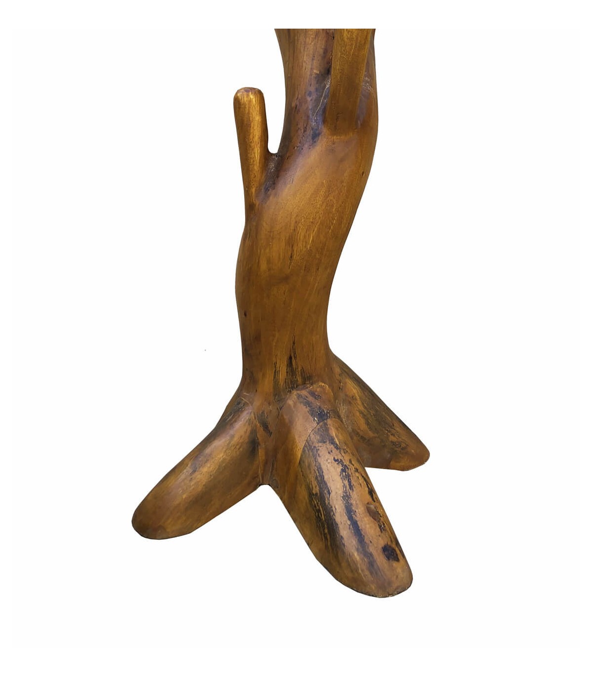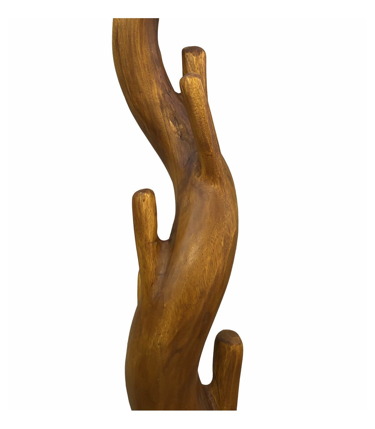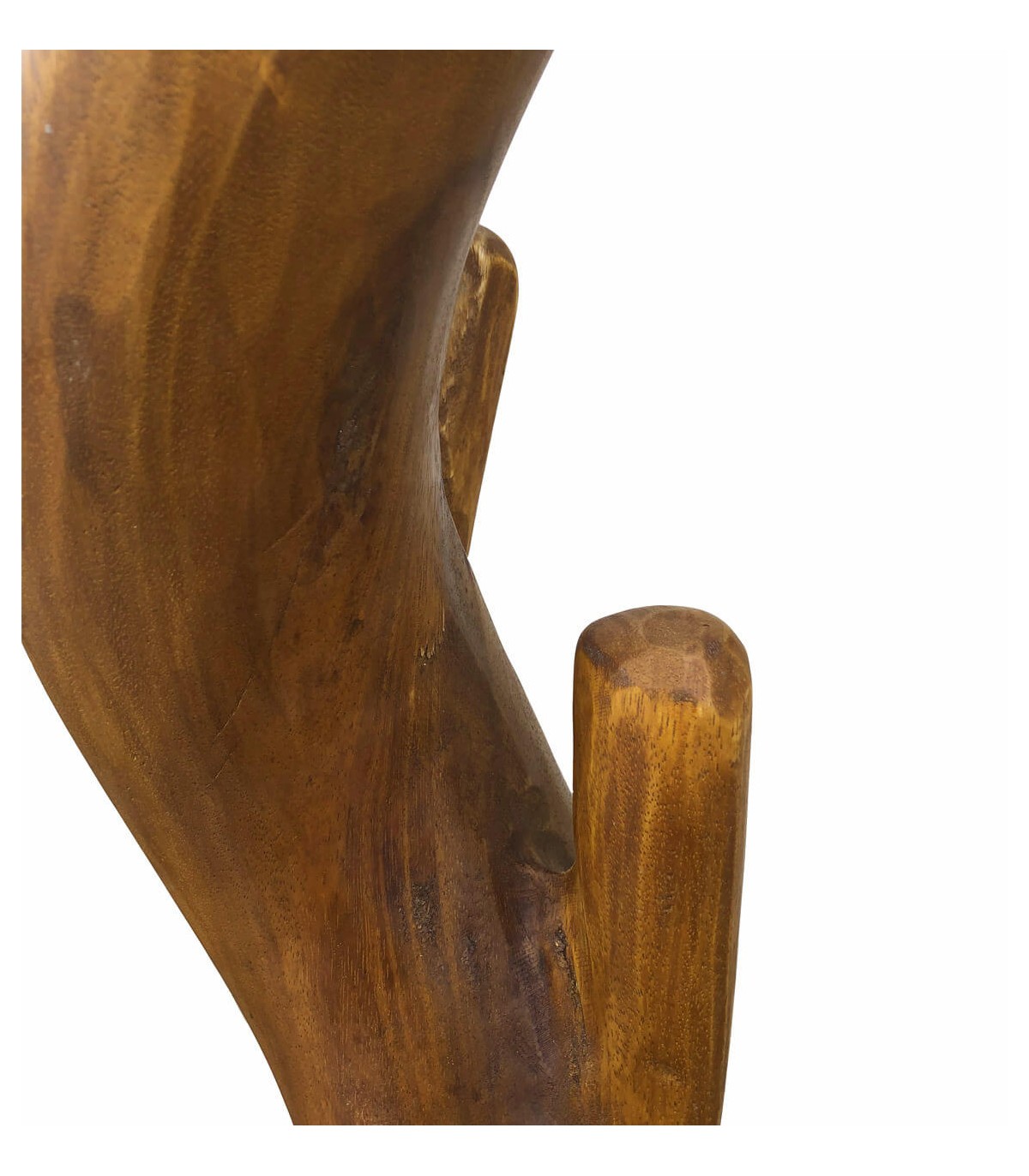 Dale un toque orgánico y artesanal a tu entrada o dormitorio con este perchero de pie tallado en un solo bloque de madera de suar. Su diseño único imita la forma natural de un tronco con múltiples ramificaciones, ofreciendo colgadores integrados ideales para chaquetas, bolsos o sombreros. Una pieza robusta y con gran presencia visual que aporta calidez, funcionalidad y carácter a cualquier espacio.