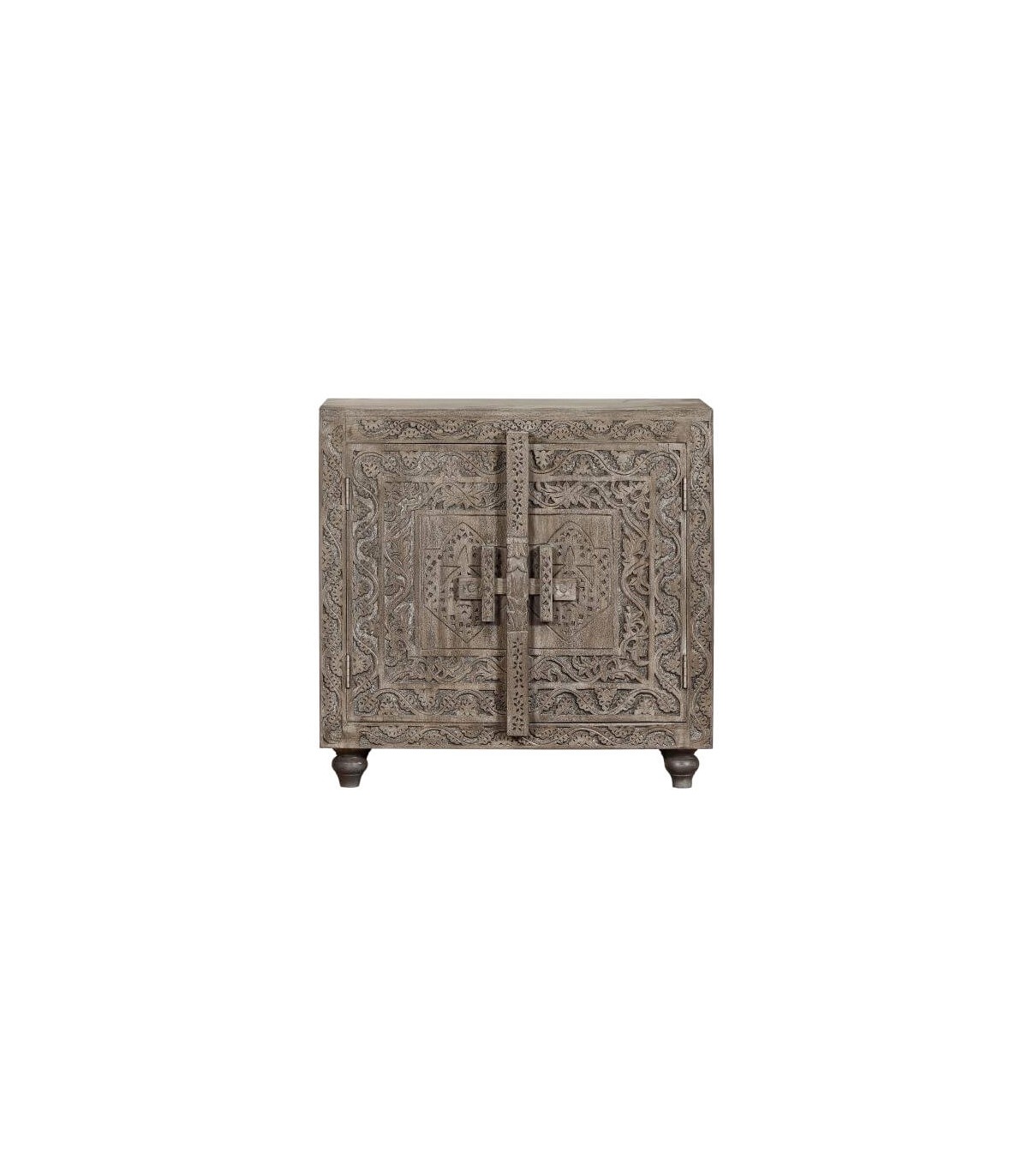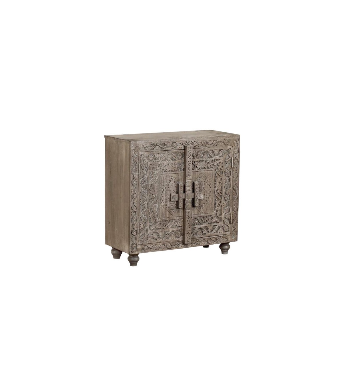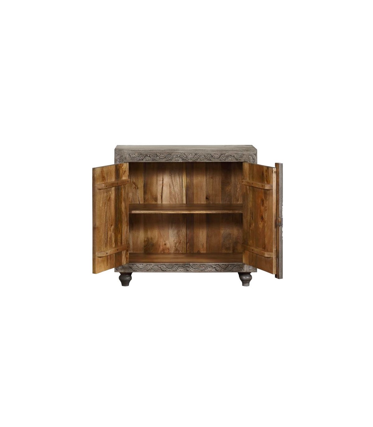 Taquillón realizado en madera de mango tallado a mano acabado natural, un gran mueble de buena capacidad y muy decorativo, perfecto para tu entrada o una zona auxiliar.