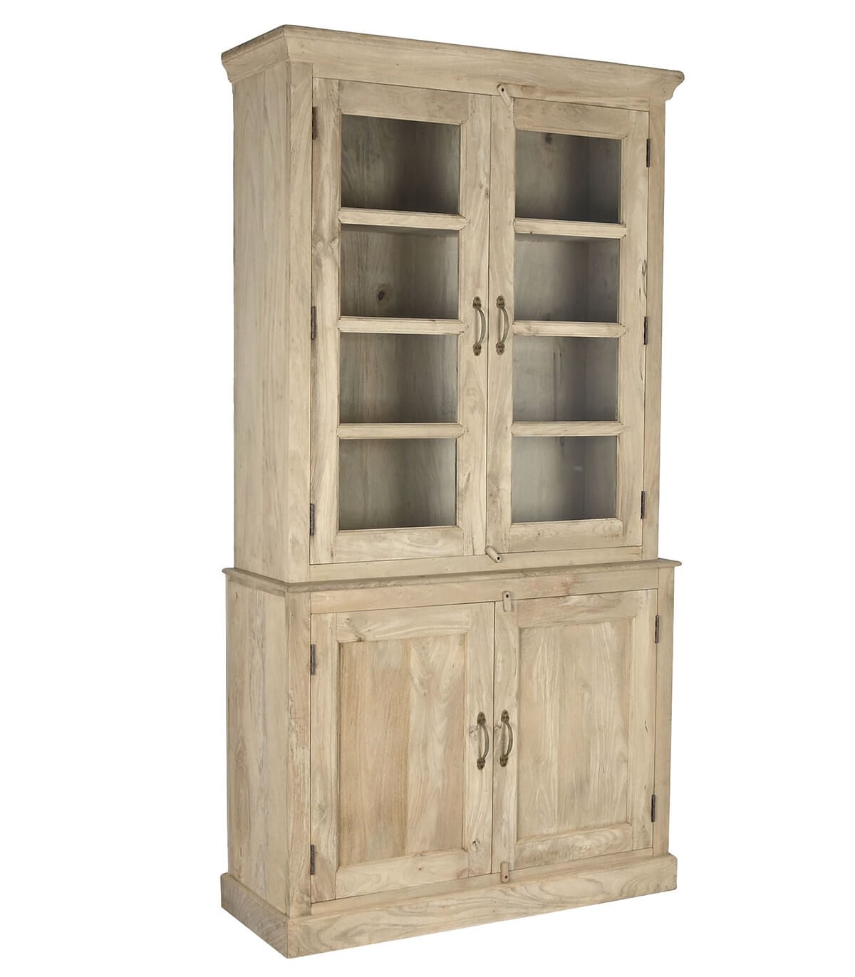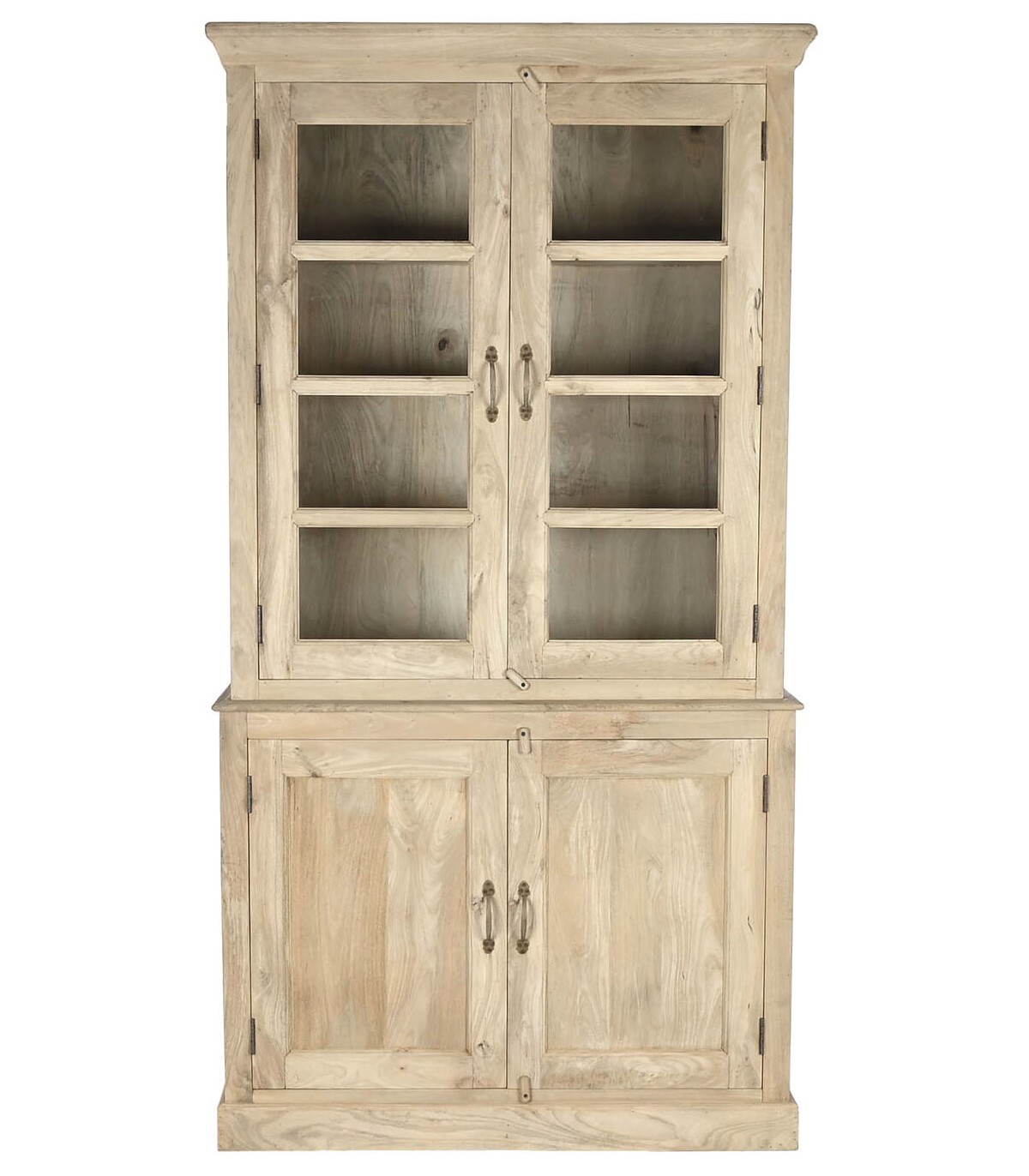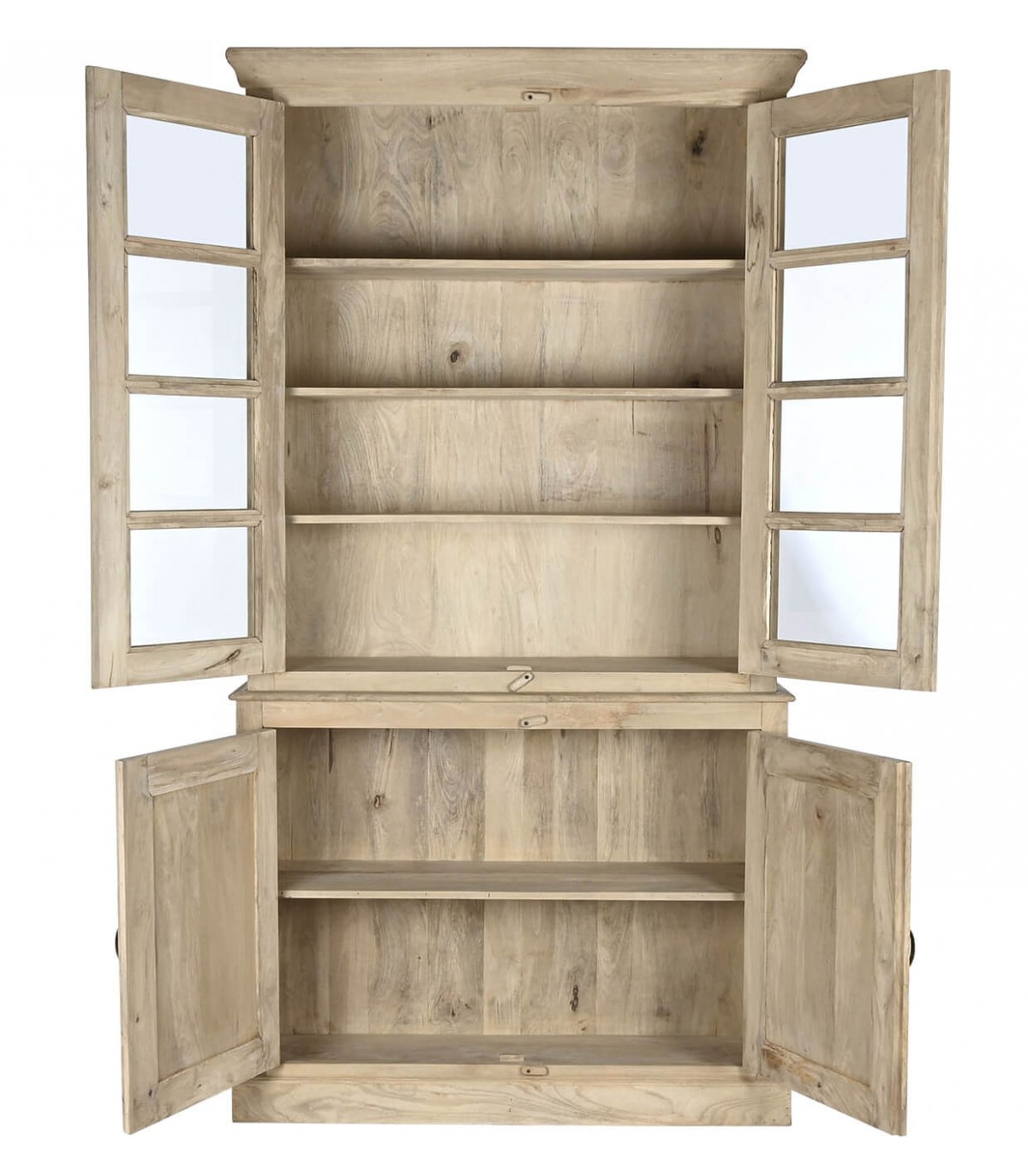 Espectacular vitrina, para grandes salones o cocinas, realizada en madera maciza de mango acabado natural, sin duda será el centro de atención en cualquier decoración.