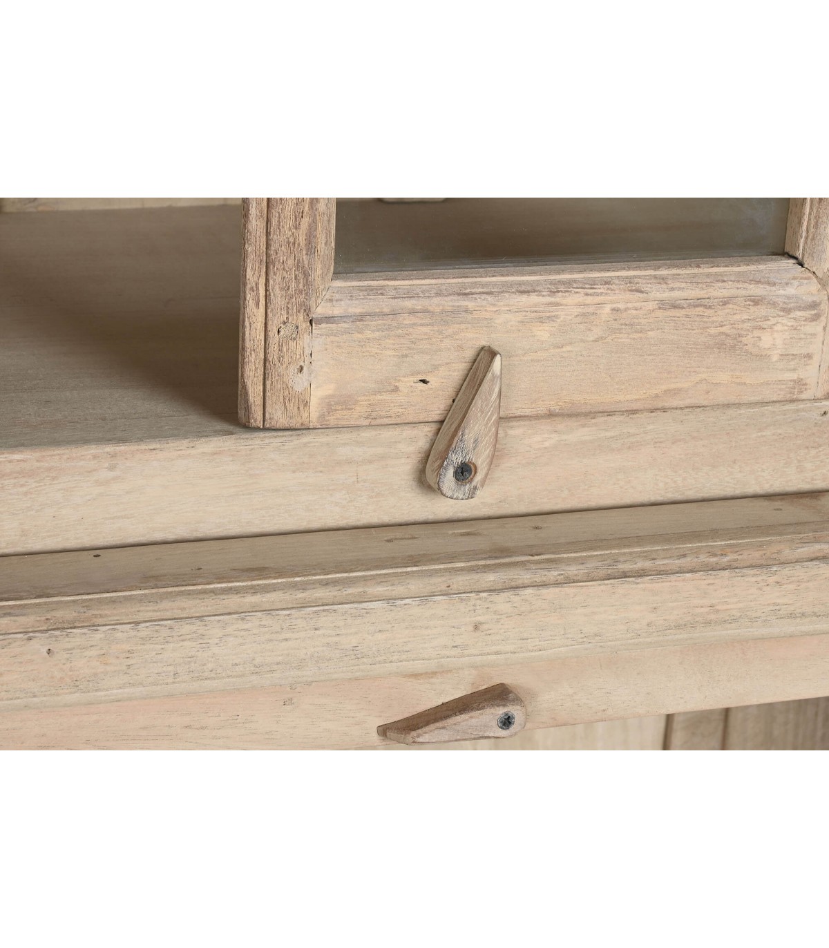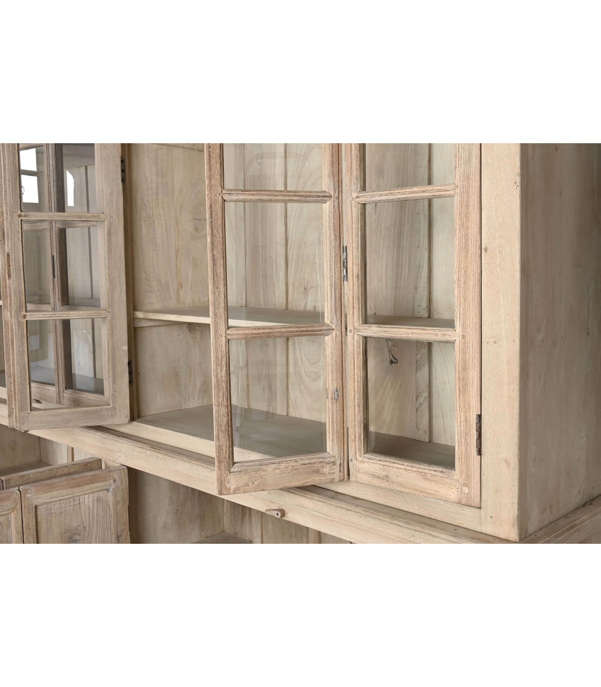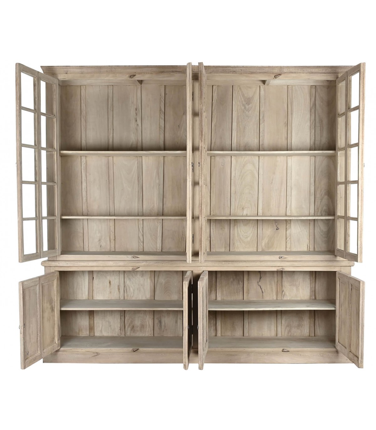 Aporta un toque de distinción y calidez a tu salón con esta espectacular vitrina fabricada en madera maciza de mango y teca, cuidadosamente acabada en tono natural para resaltar las vetas y texturas únicas de la madera. Su diseño imponente y funcional la convierte en el centro de atención en cualquier ambiente, proporcionando amplio espacio para almacenar y exhibir tus objetos decorativos o vajilla con estilo.