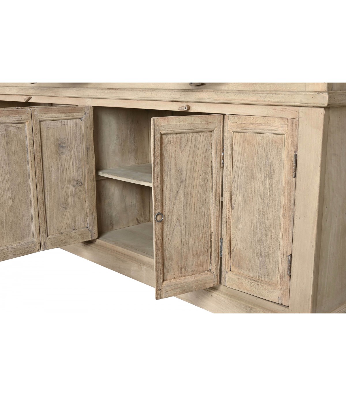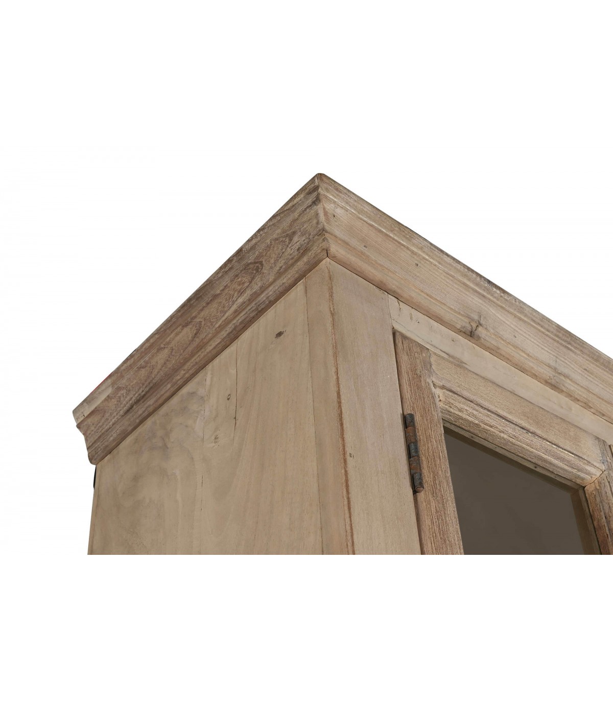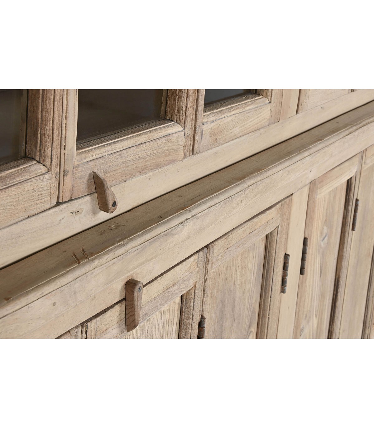 Aporta un toque de distinción y calidez a tu salón con esta espectacular vitrina fabricada en madera maciza de mango y teca, cuidadosamente acabada en tono natural para resaltar las vetas y texturas únicas de la madera. Su diseño imponente y funcional la convierte en el centro de atención en cualquier ambiente, proporcionando amplio espacio para almacenar y exhibir tus objetos decorativos o vajilla con estilo.