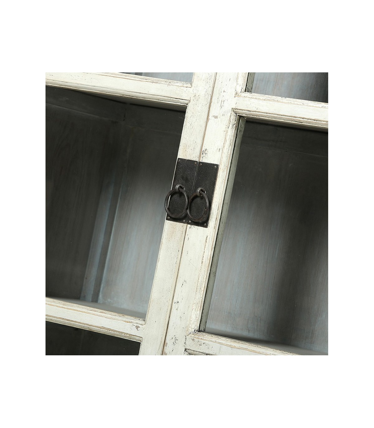 🧿 Vitrina Oriental Blanca con 4 Puertas de Cristal y Cajones – Madera Decapada ✨