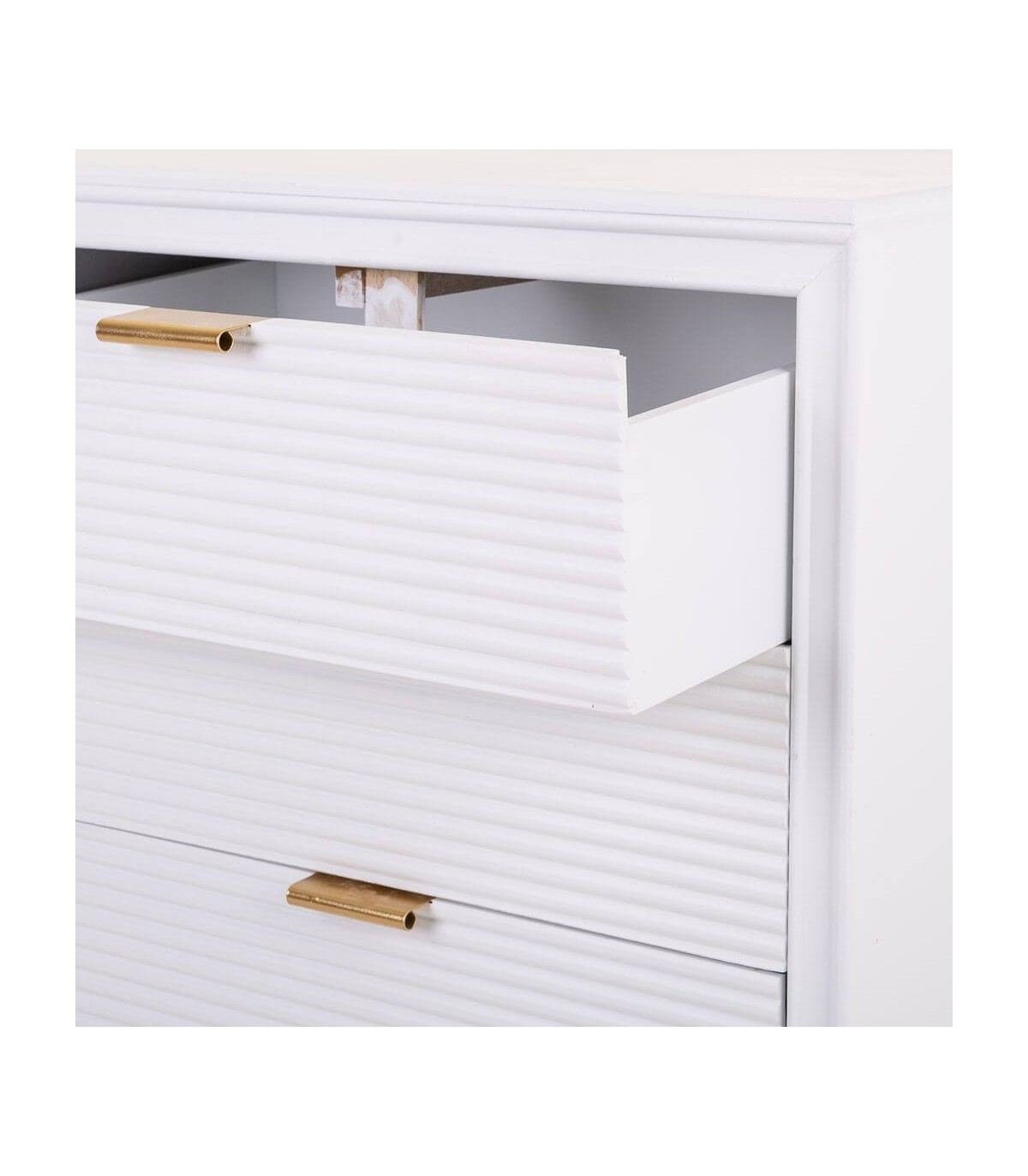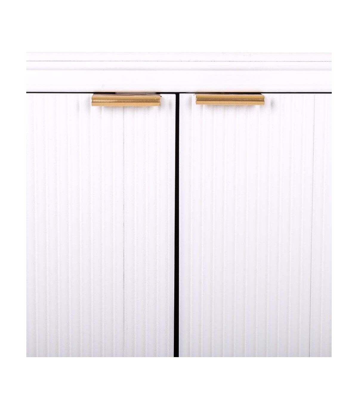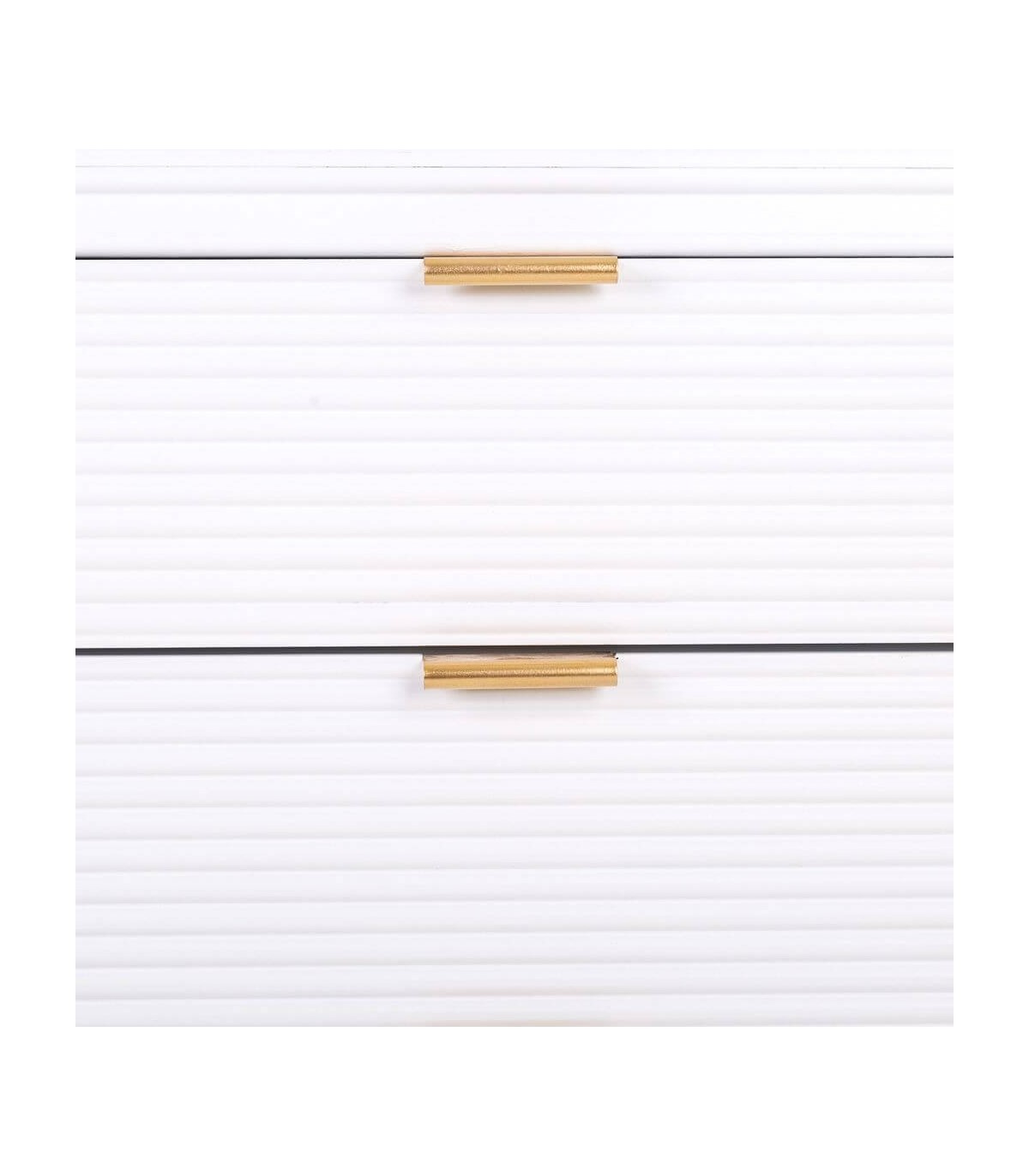Acabado, lacado en blanco, tiradores y patas en metal oro.