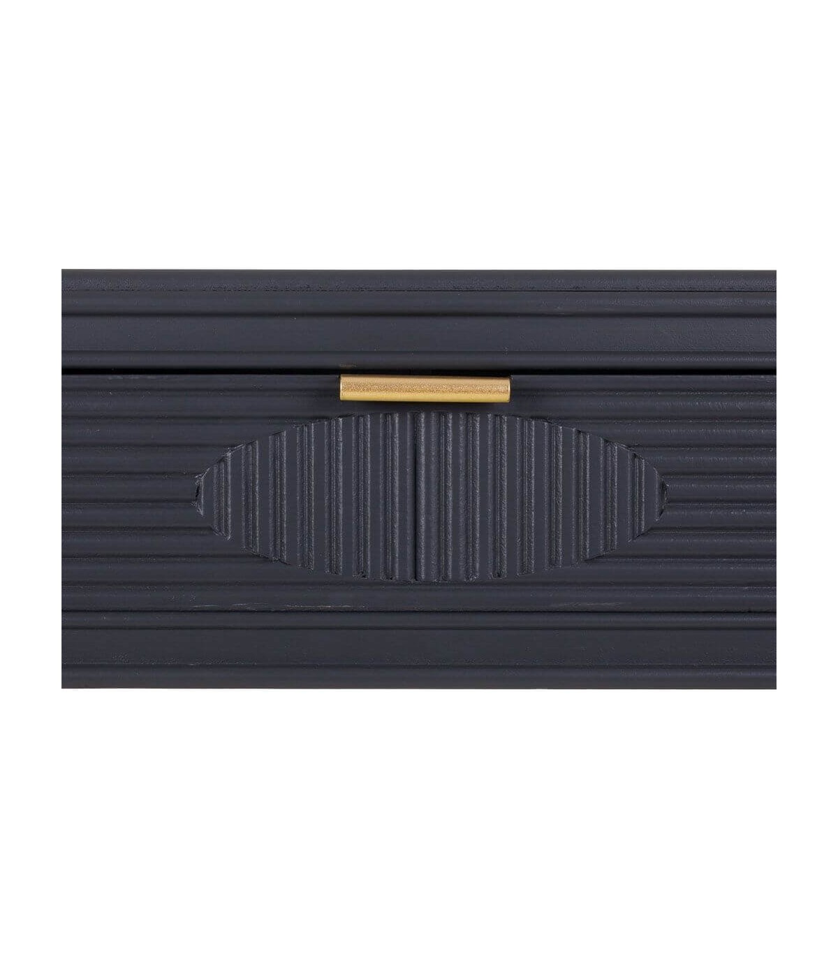 Consola de entrada grande de nuestra colección Neo, una colección que se caracteriza por su estilo art decó, realizada en madera lacada en negro o blanco, de líneas rectas con el contraste de los dibujos geométricos en sus frentes y el contraste con el oro, una colección muy elegante con muebles y complementos para cualquier lugar de tu casa.
