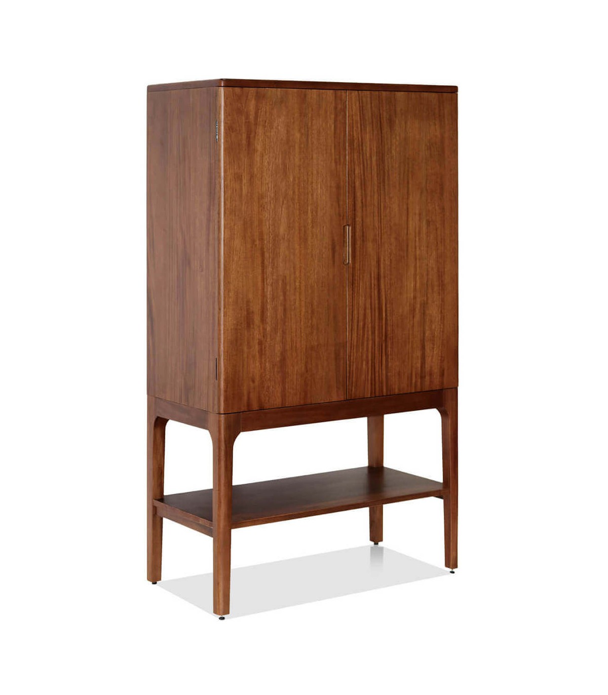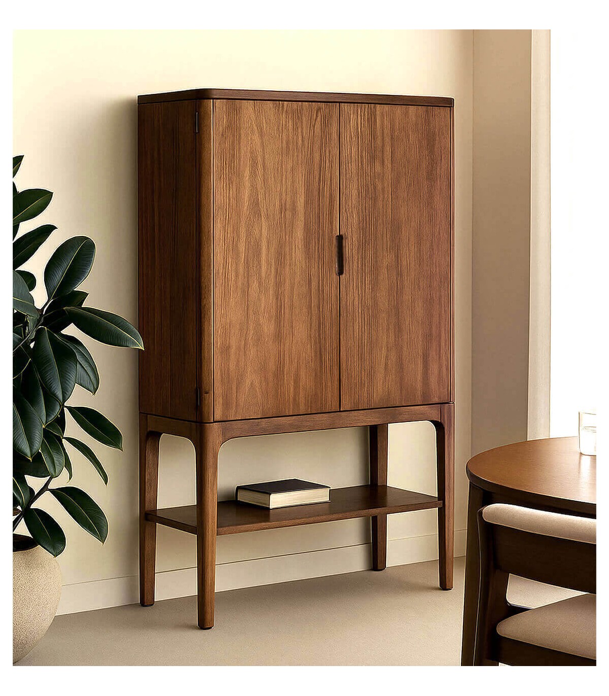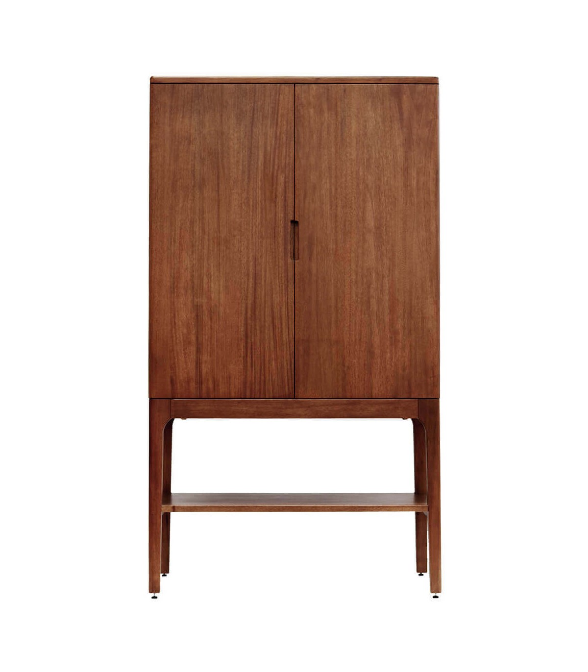 Descubre la elegancia atemporal de la colección Oporto con este mueble de líneas depuradas y estética colonial. Fabricado en madera maciza de caoba, este armario alacena cuenta con dos puertas, estantes interiores de cristal y dos cajones perfectos para mantener el orden con estilo. La balda inferior aporta ligereza visual y funcionalidad.