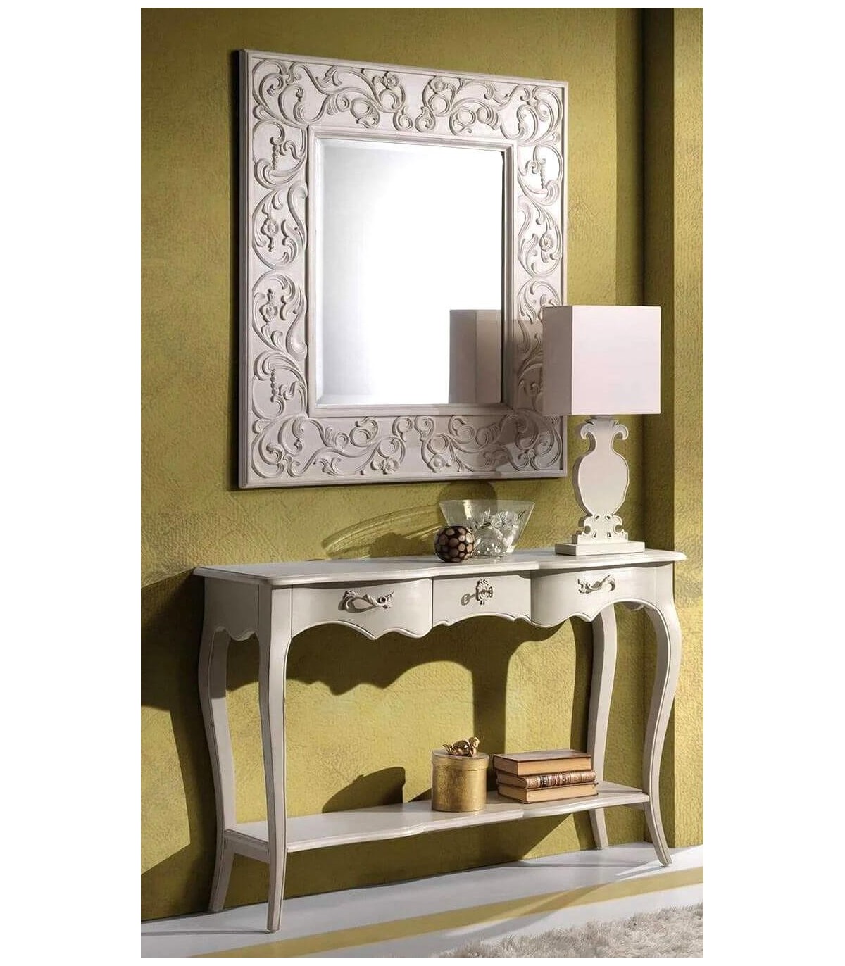 Consola de nuestra colección Provence, una colección pura de estilo provenzal de corte francés, una colección de muebles en madera maciza de caoba con acabado en marfil envejecido, jugando con las líneas curvas y las tallas artesanales que le dan elegancia y prestancia a todo el conjunto, una colección ideal para los amantes del buen mueble.